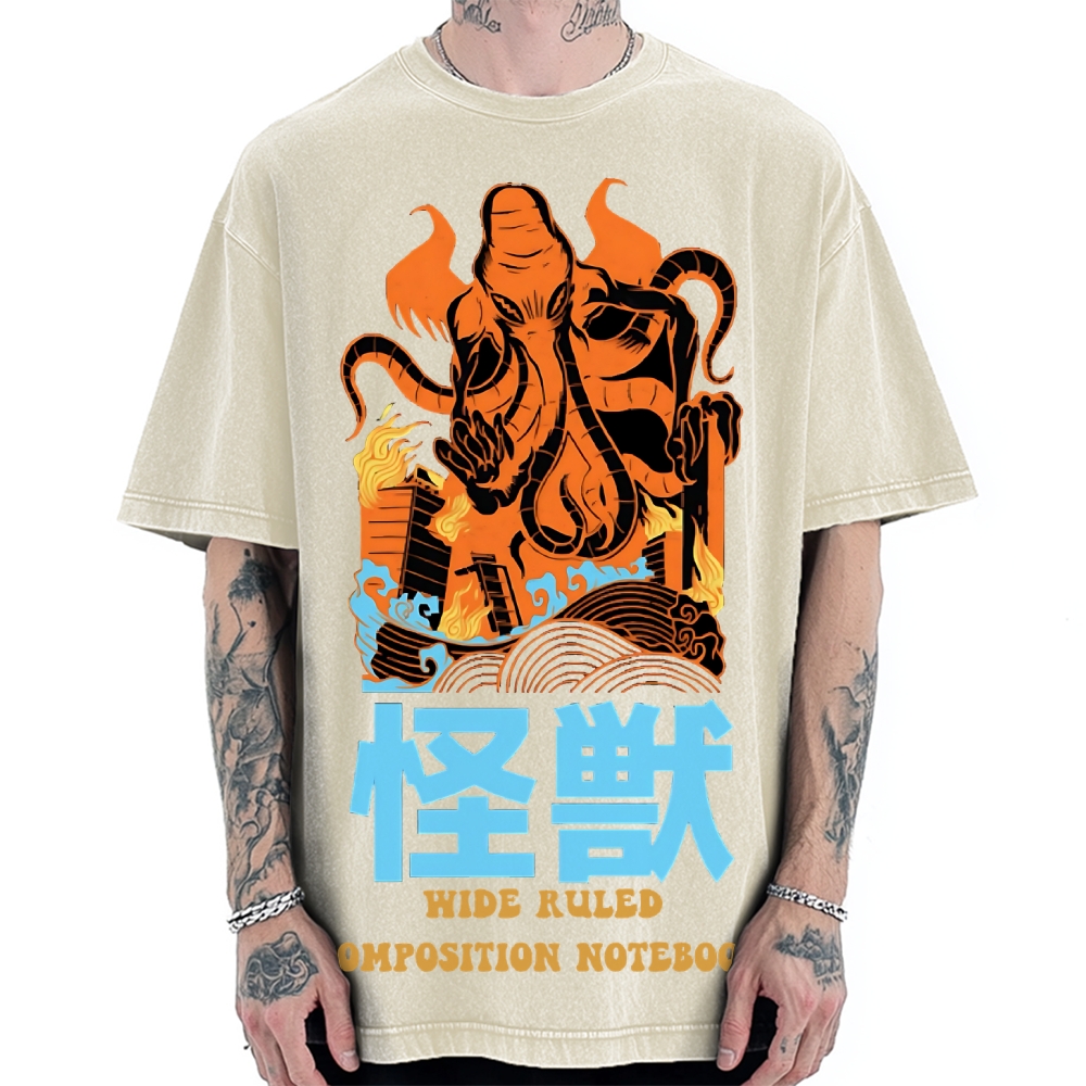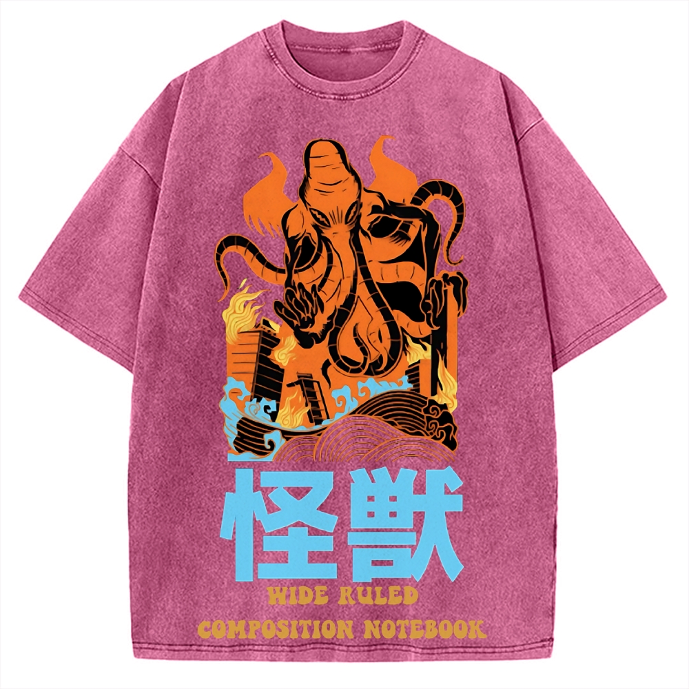 Cthulhu Octopus Monster Japanese Kanji Kaiju Vintage Washed T-shirt