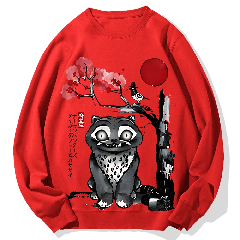 Derpy Tiger and Sussy Demon Hunters Japanese sumi-e Cotton Sweatshirt