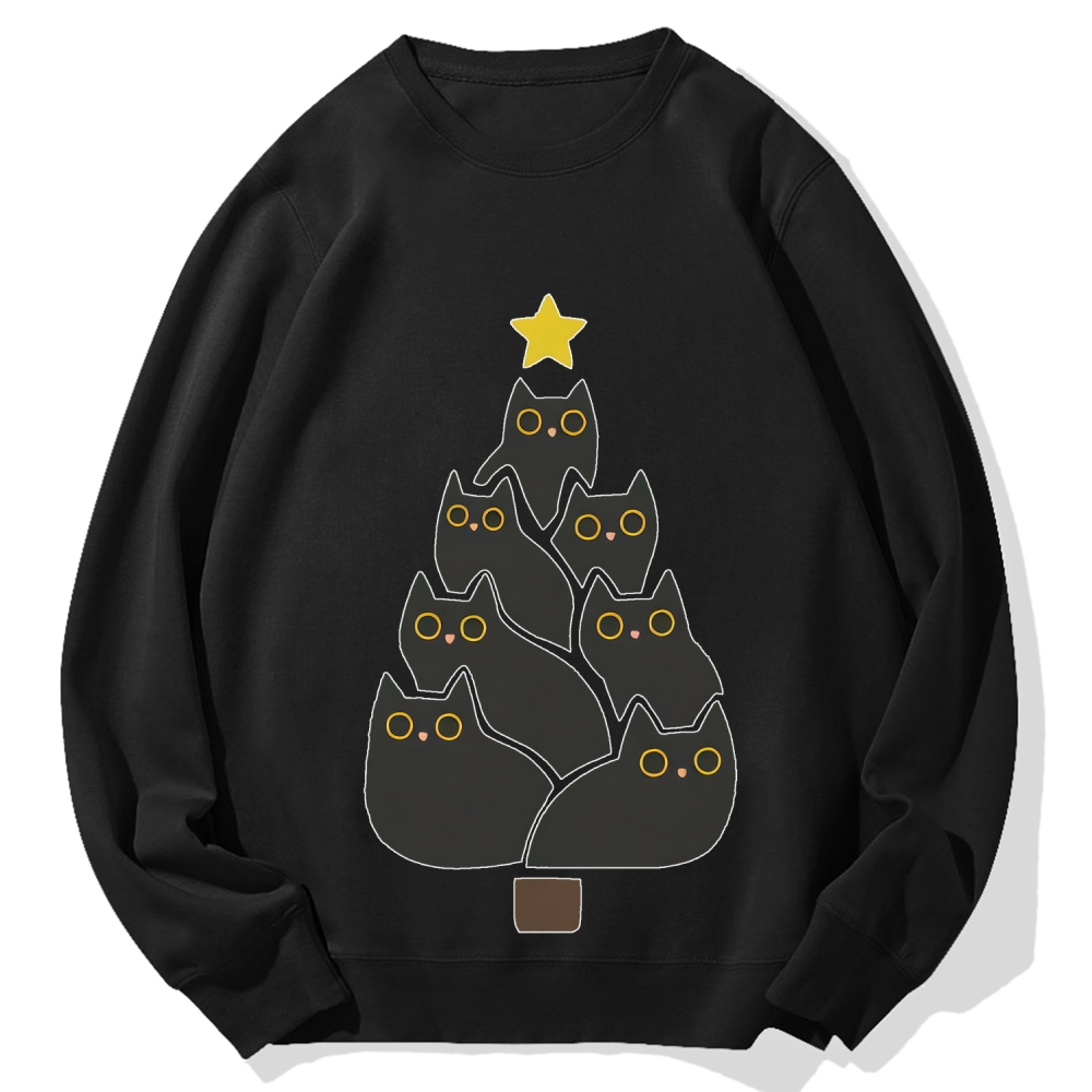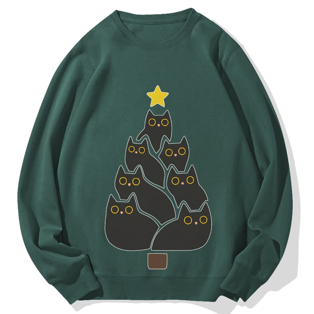 Enjoy Cool Funny Christmas Black Cats Decoration Tree Cotton Sweatshirt