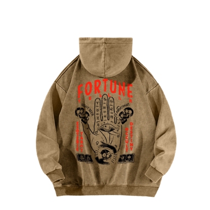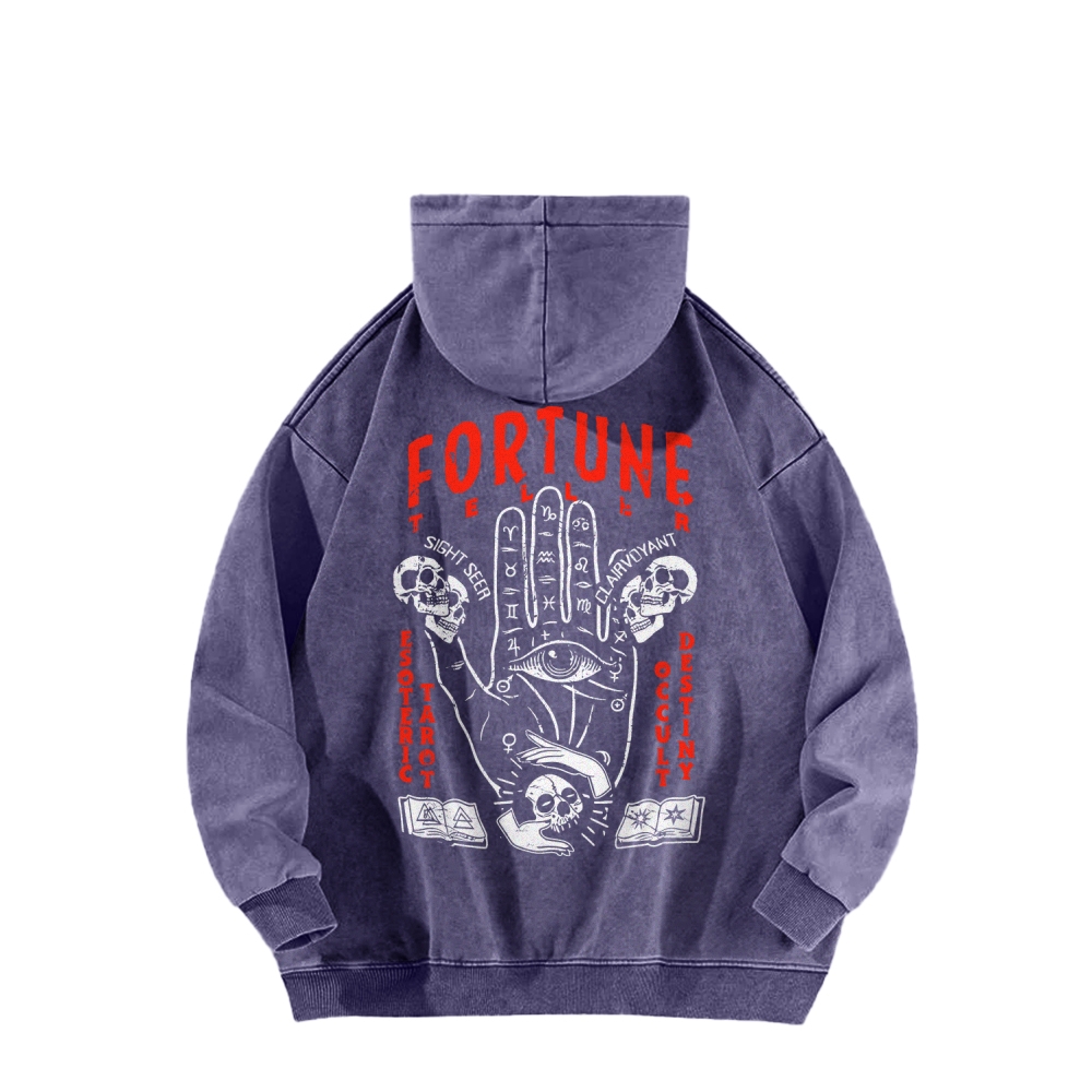 Fortune Teller Front And Back Printing Vintage Washed Hoodie