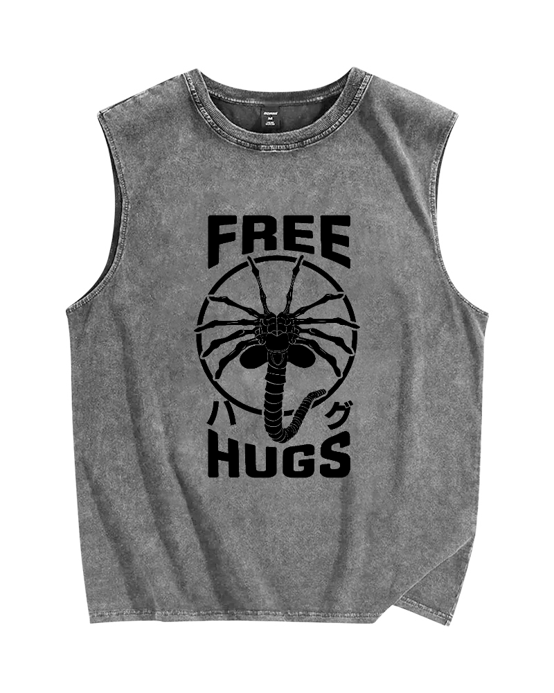 Free Hugs Vintage Distressed Washed Tank Top