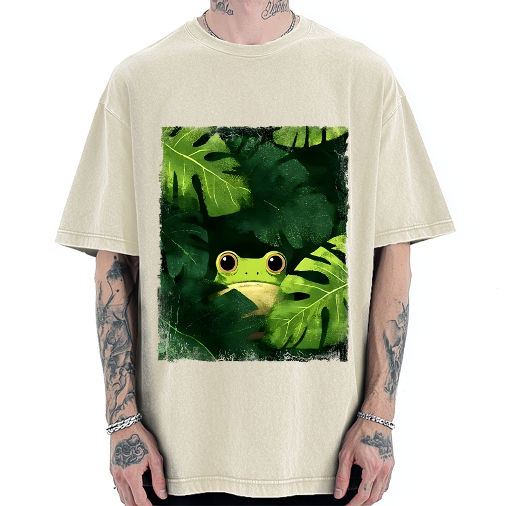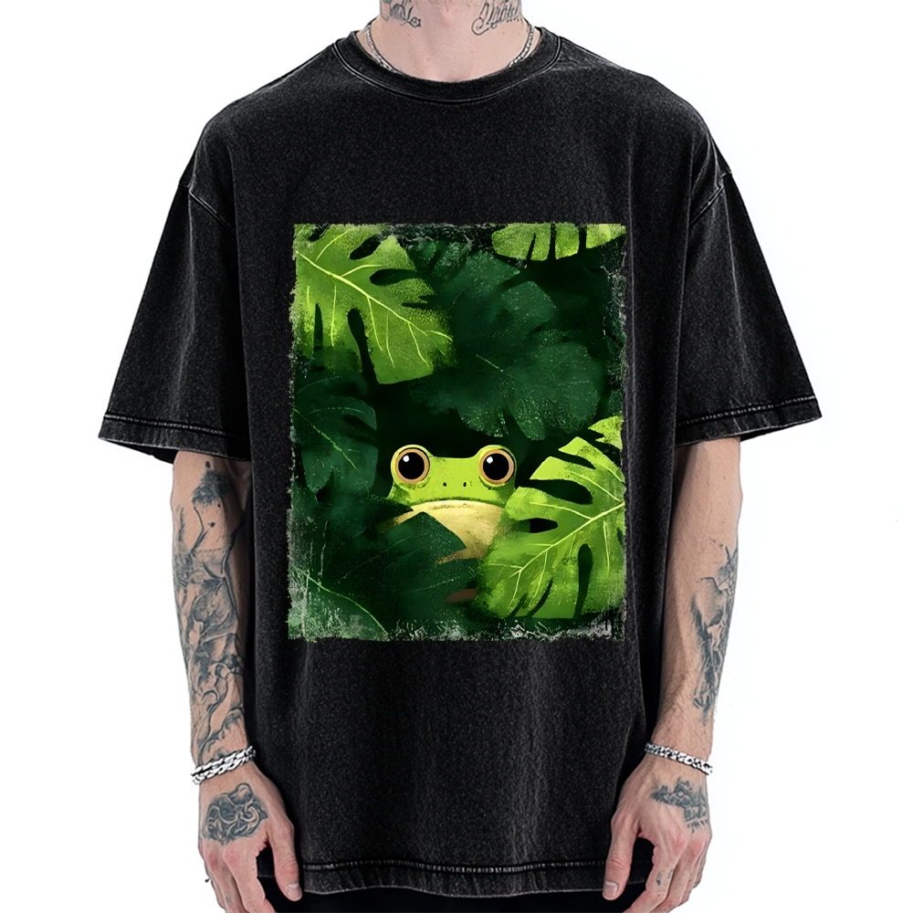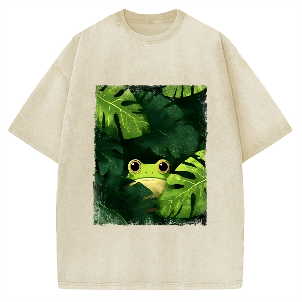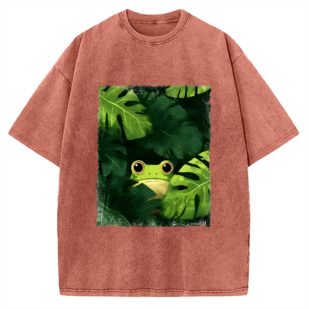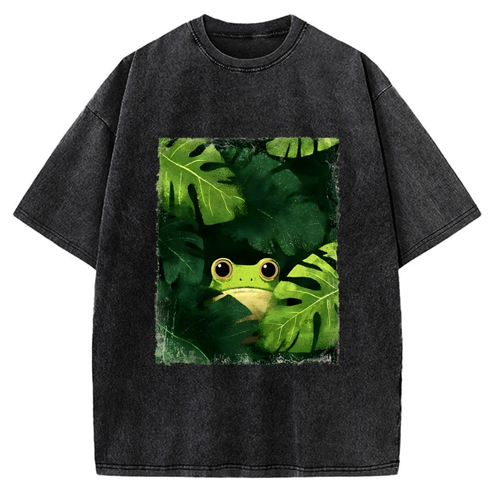 Frog Hiding In Green Leaves Vintage Washed T-shirt