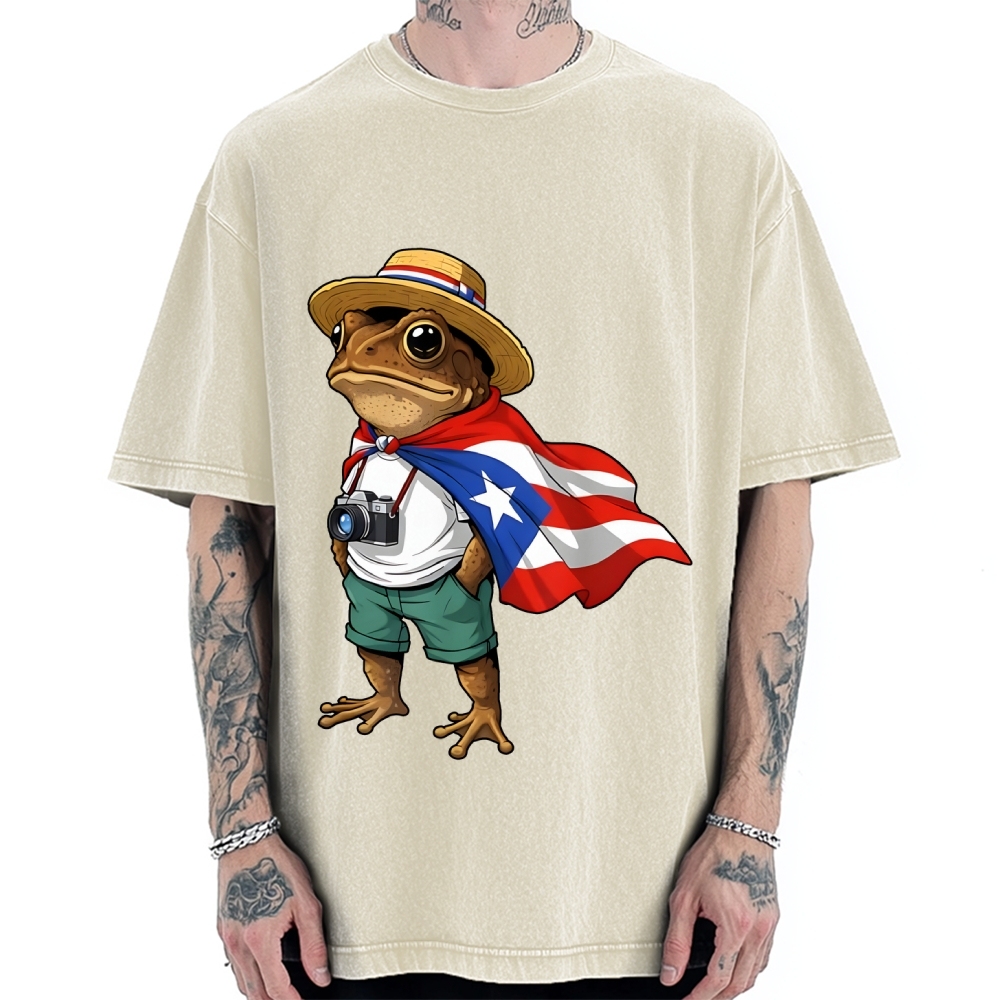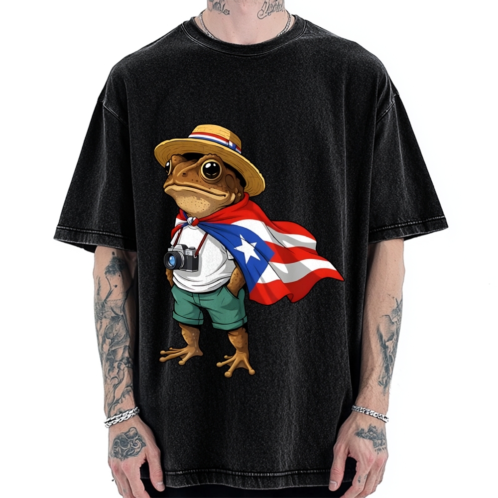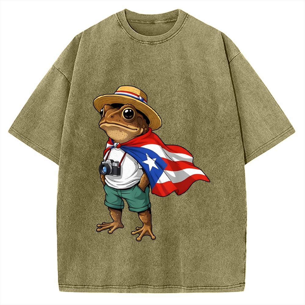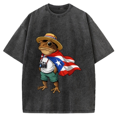 Frog Puerto Rico Flag Vintage Washed T-shirt