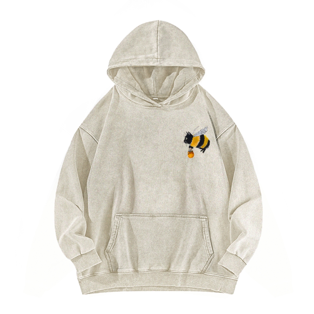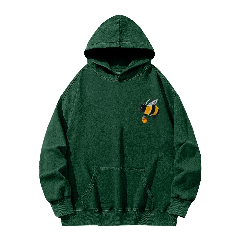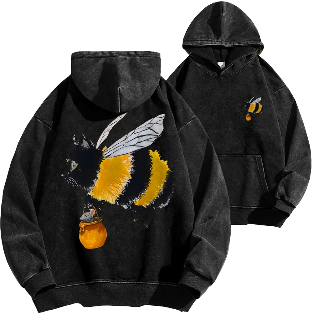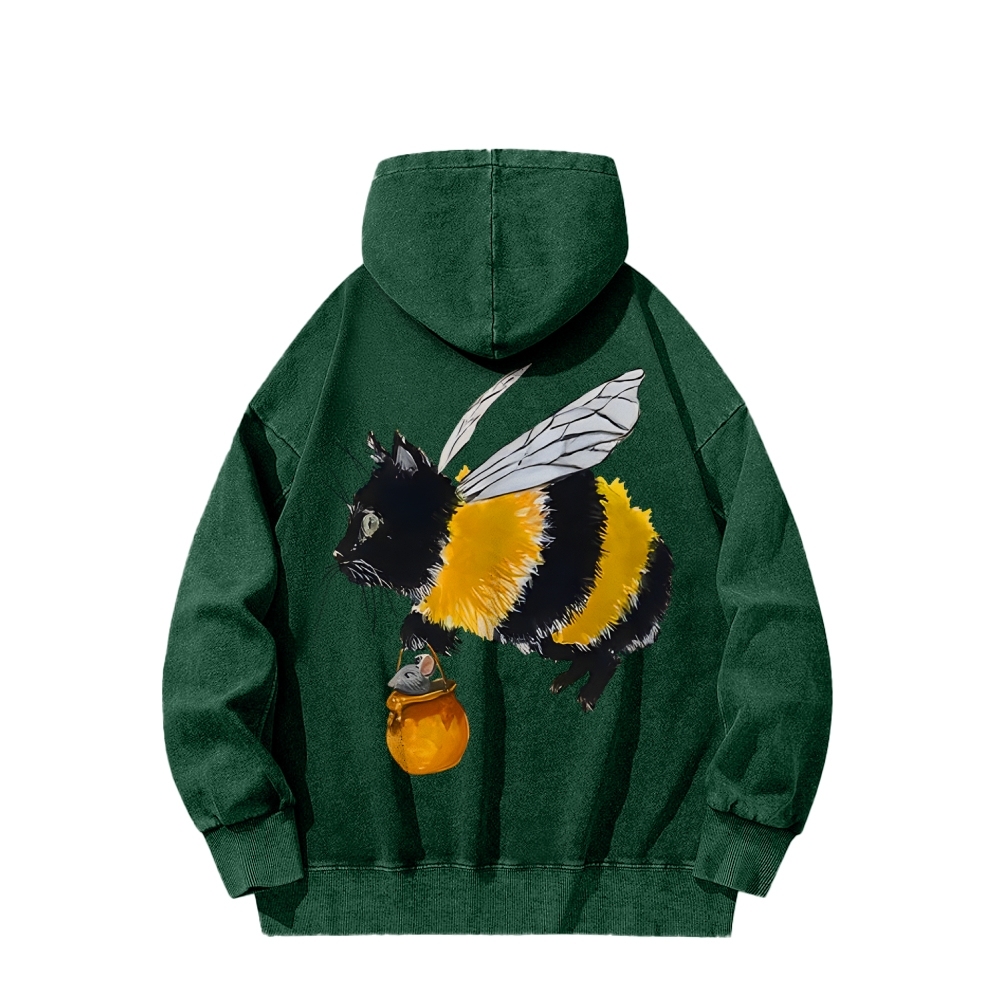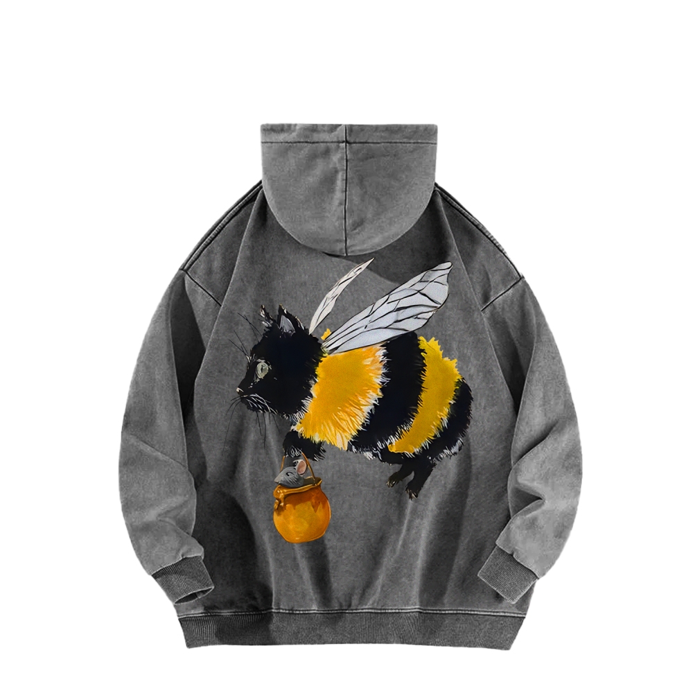 Funny bee cat Front And Back Printing Vintage Washed Hoodie