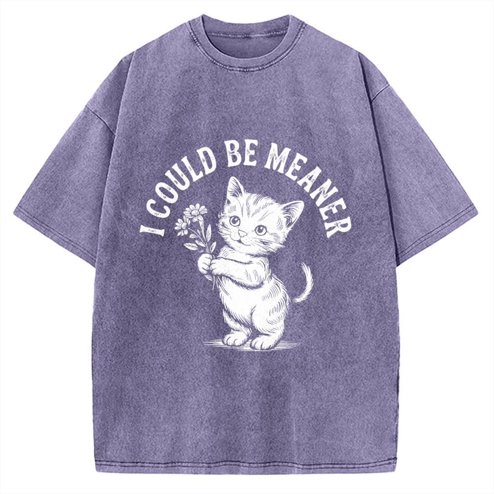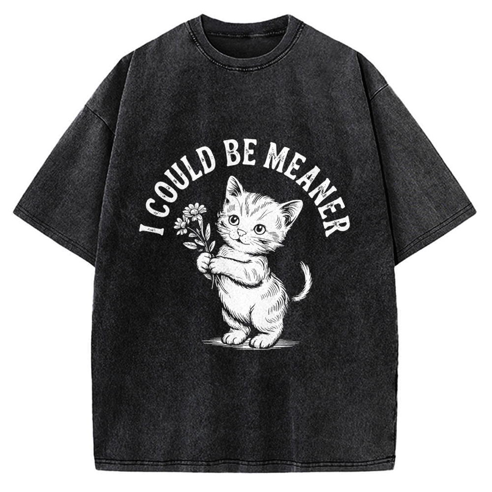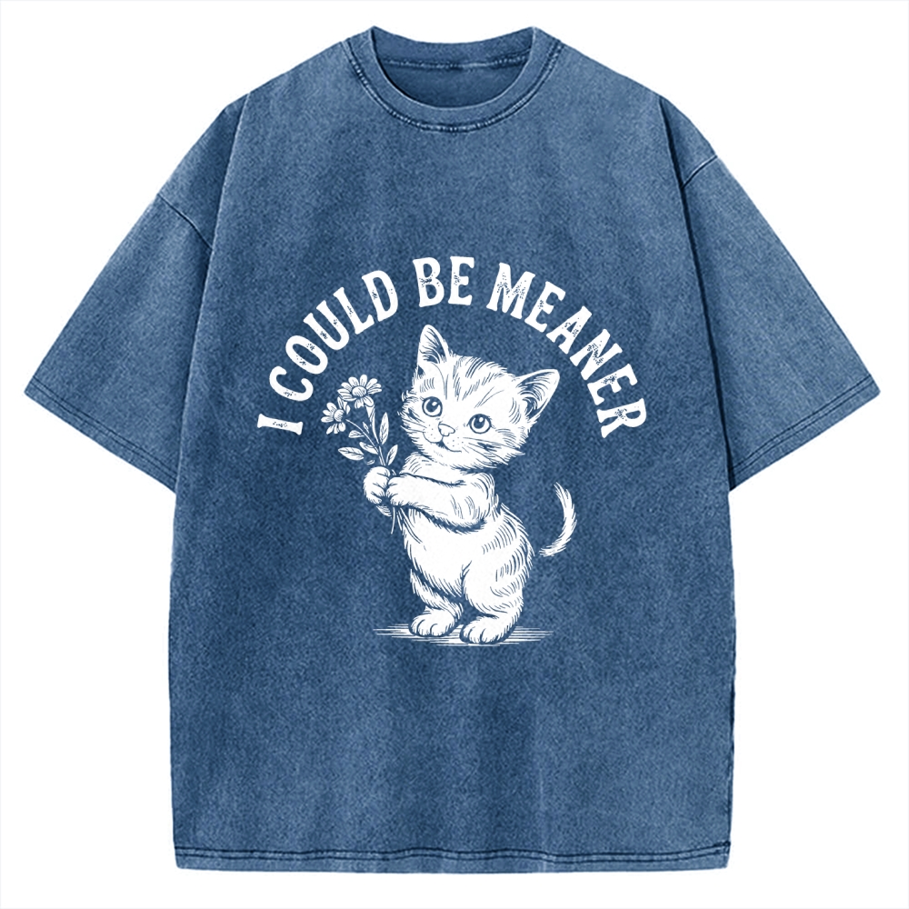 Funny Sarcastic Cat I Could Be Meaner Vintage Washed T-shirt