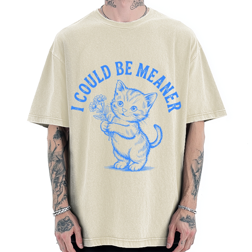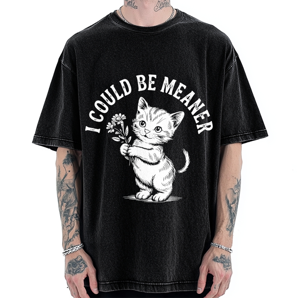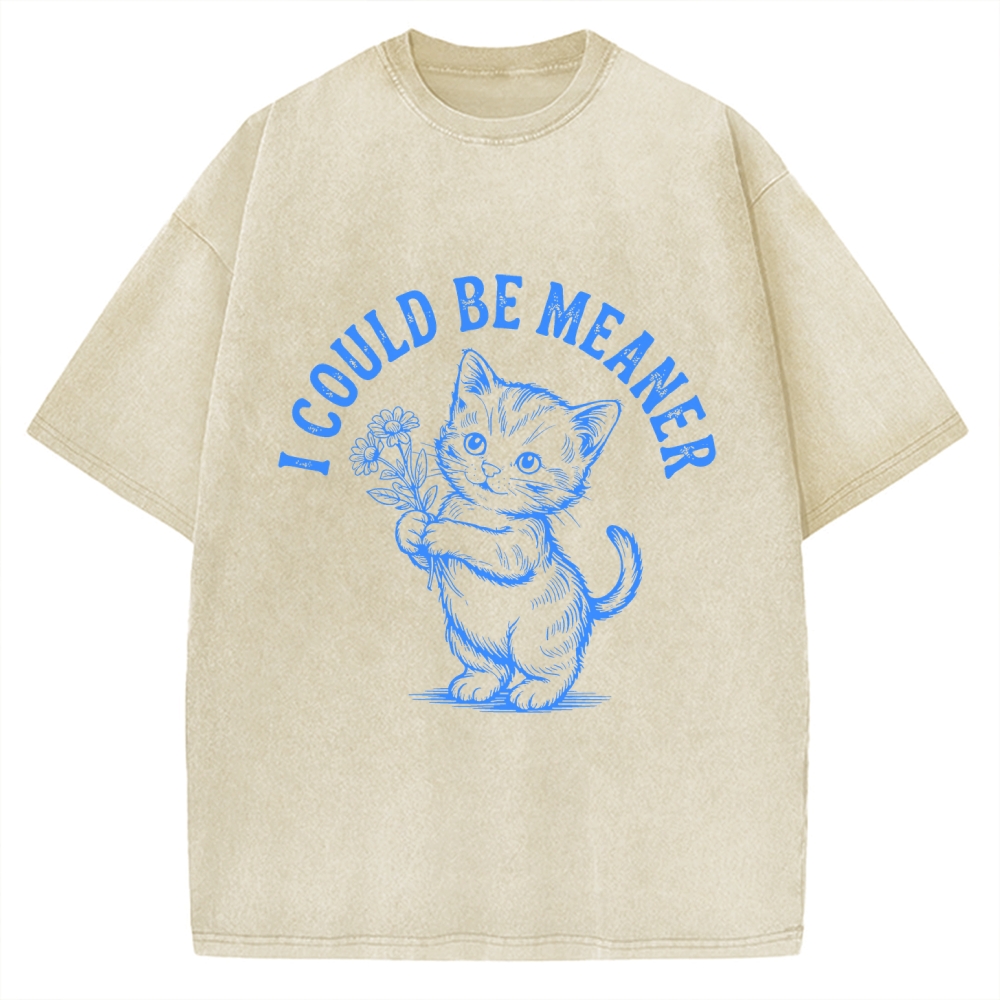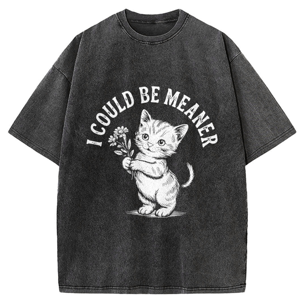 Funny Sarcastic Cat I Could Be Meaner Vintage Washed T-shirt