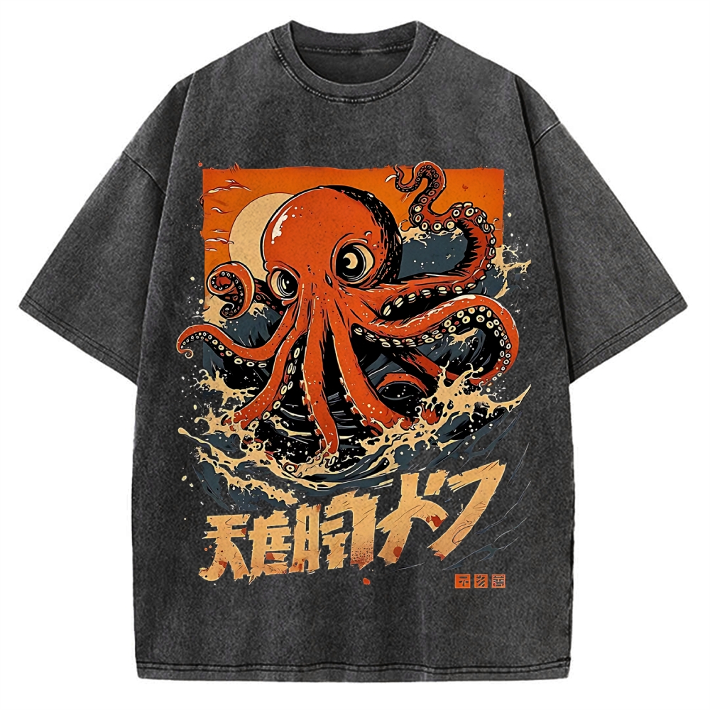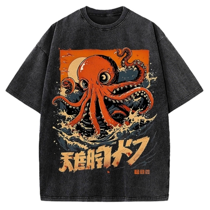 Giant sea monster octopus Cthulhu Vintage Washed T-shirt