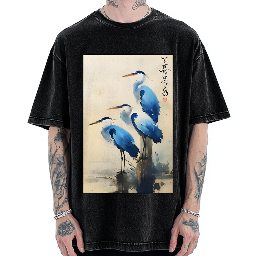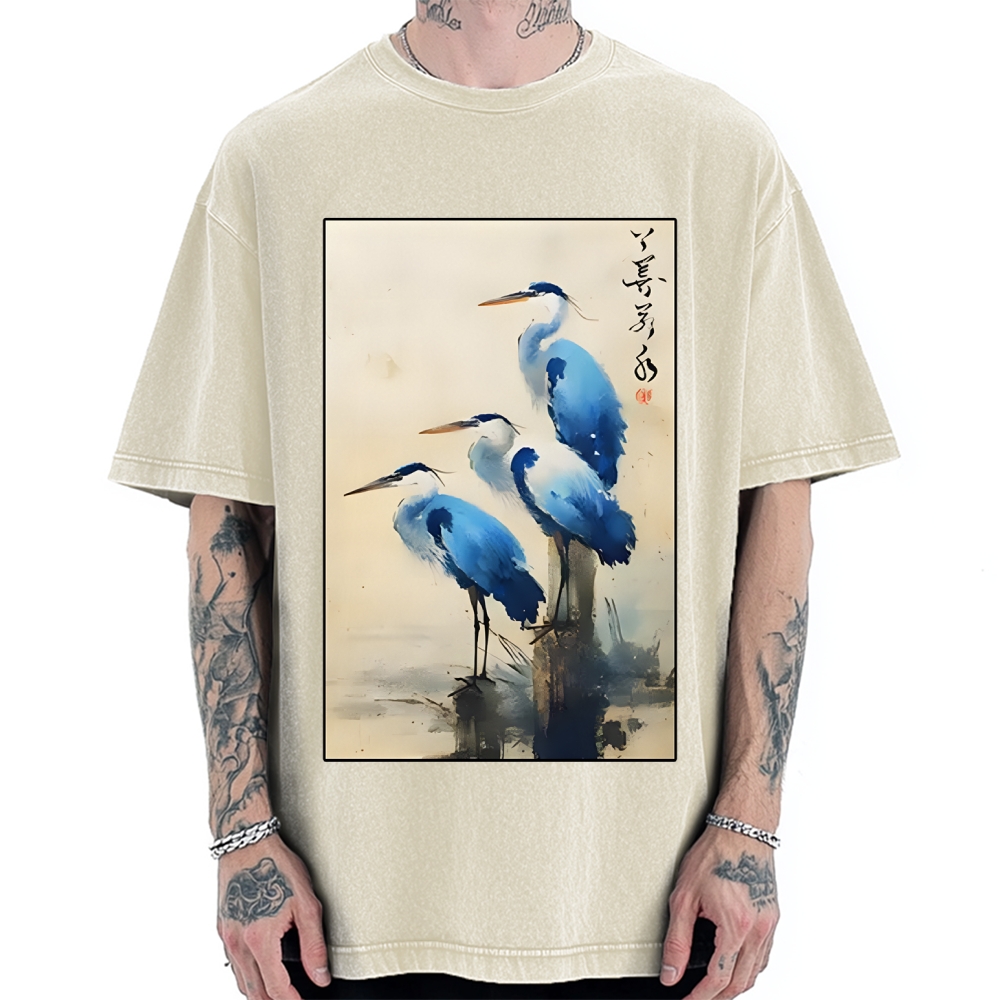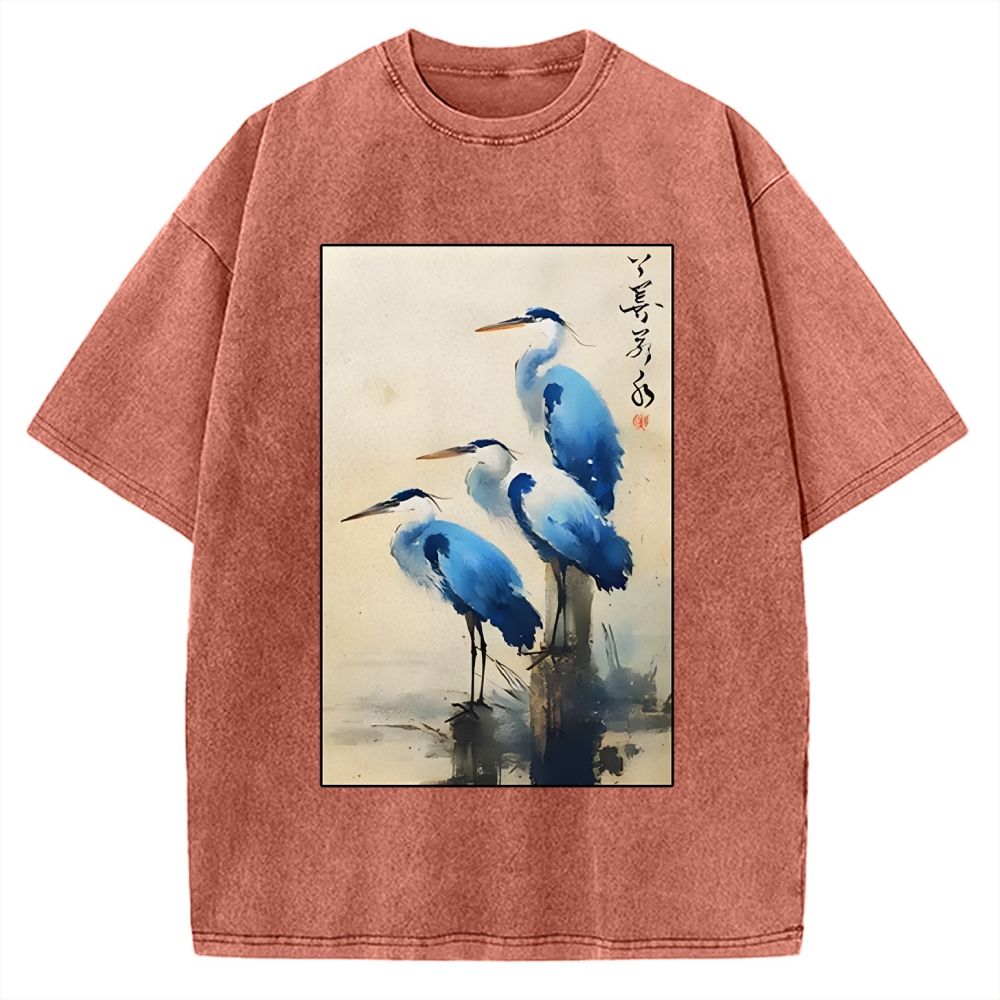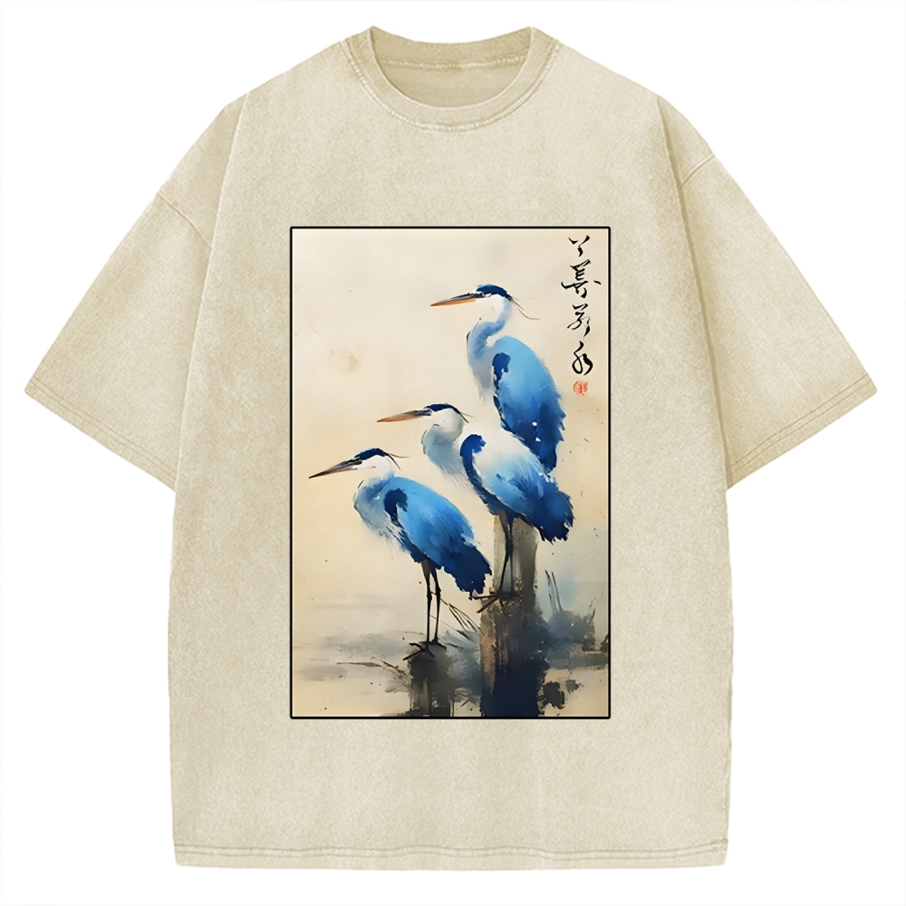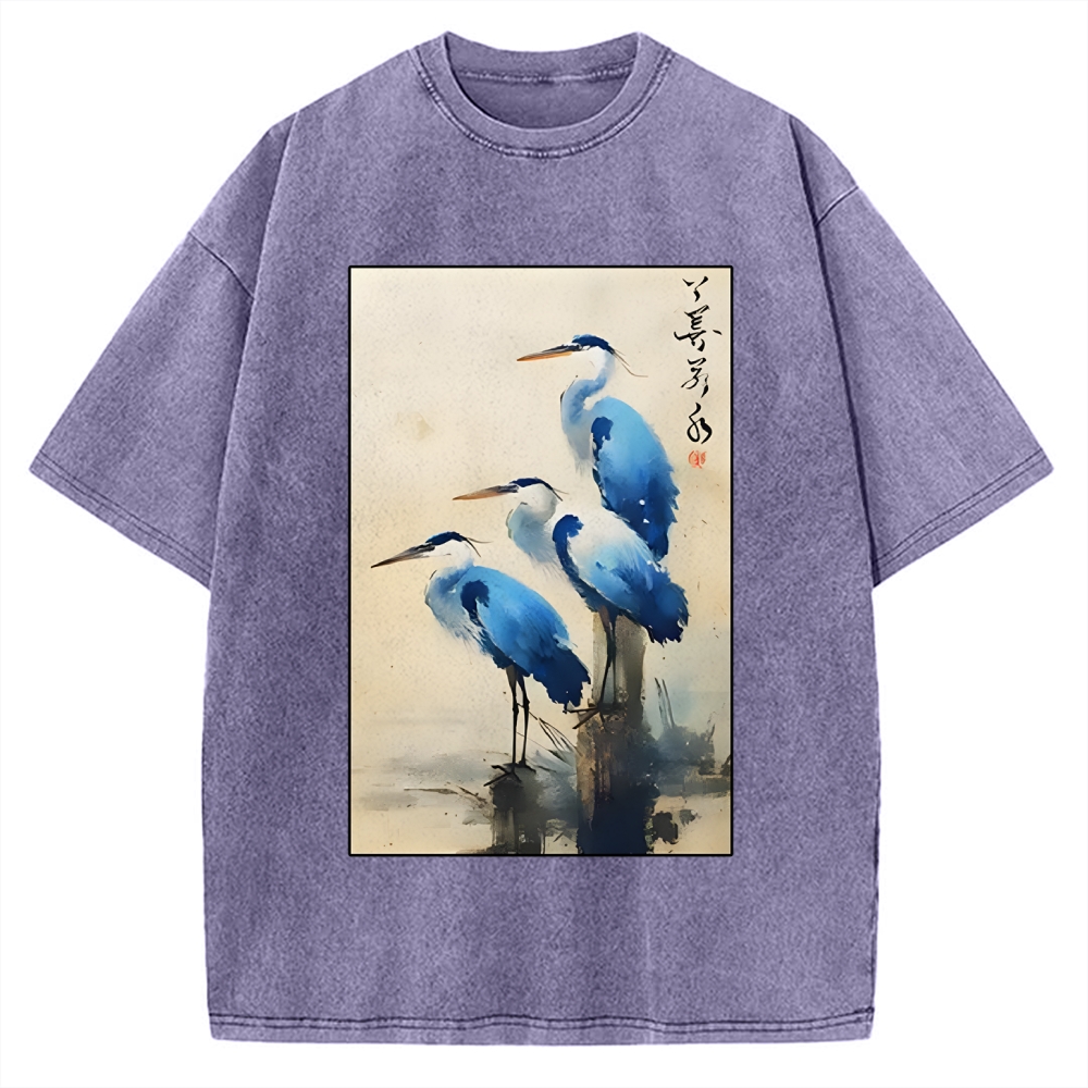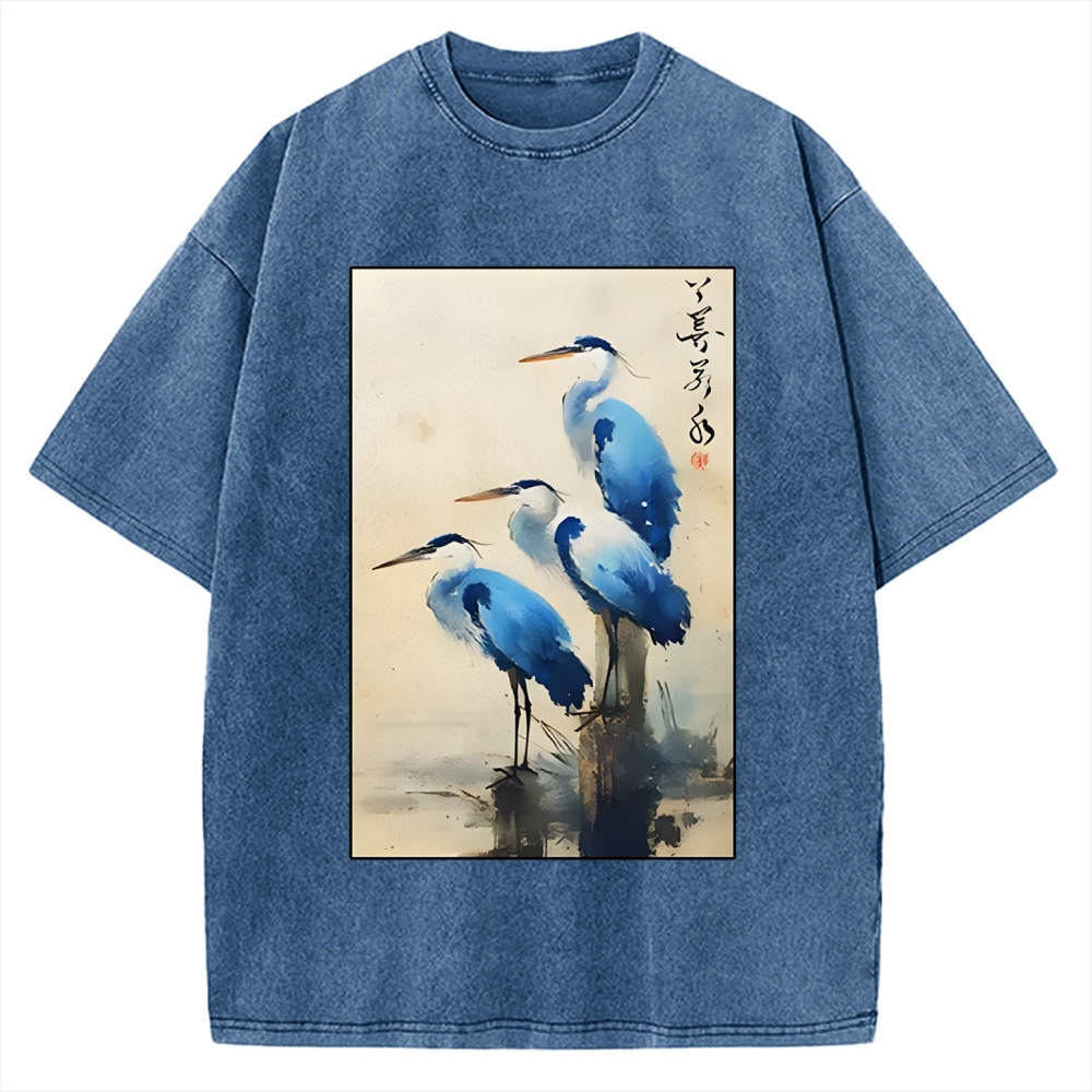 Great Blue Heron Japan Vintage Washed T-shirt