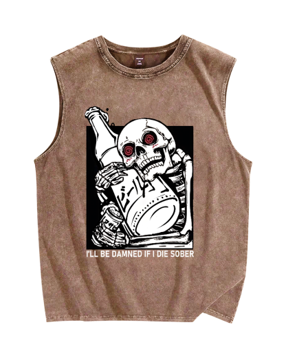 I'll Be Damned If I Die Sober Vintage Distressed Washed Tank Top