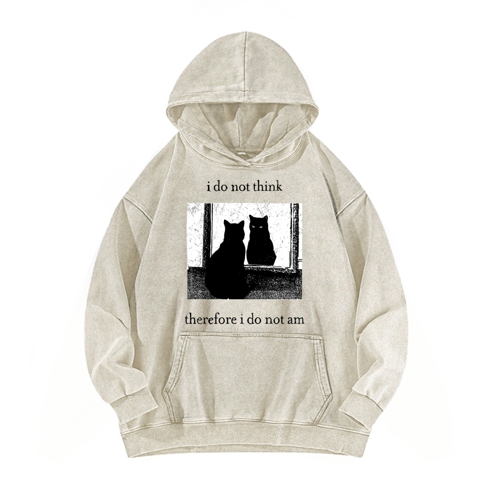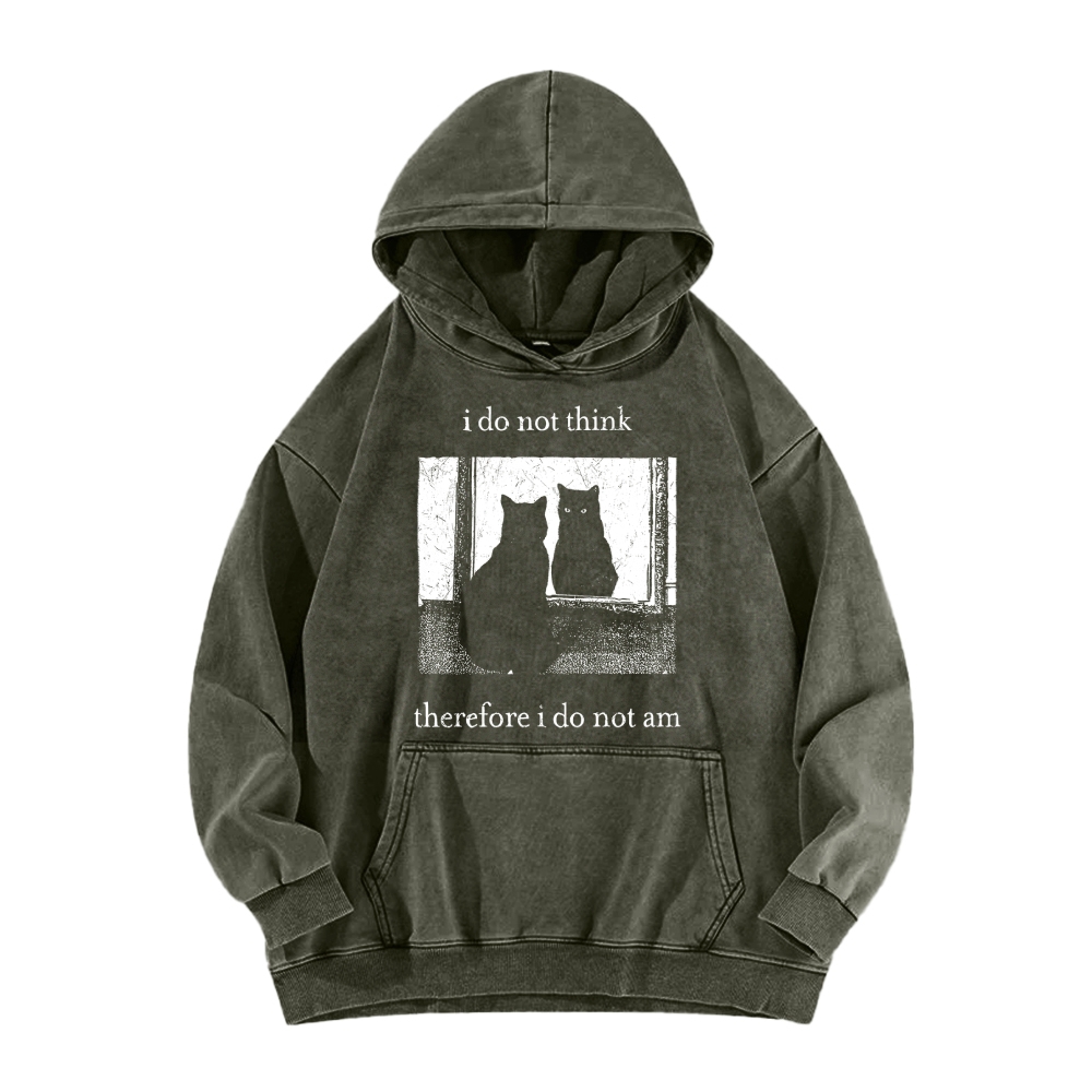 I do not think therefore i do not am Funny Cat Vintage Washed Hoodie