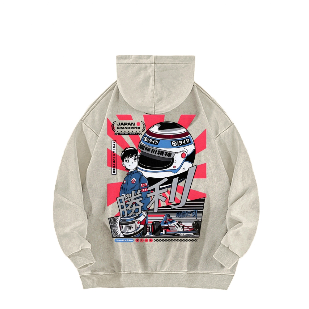 Japan Grand Prix Race Front And Back Printing Vintage Washed Hoodie