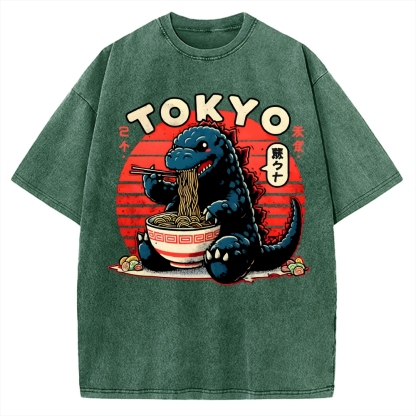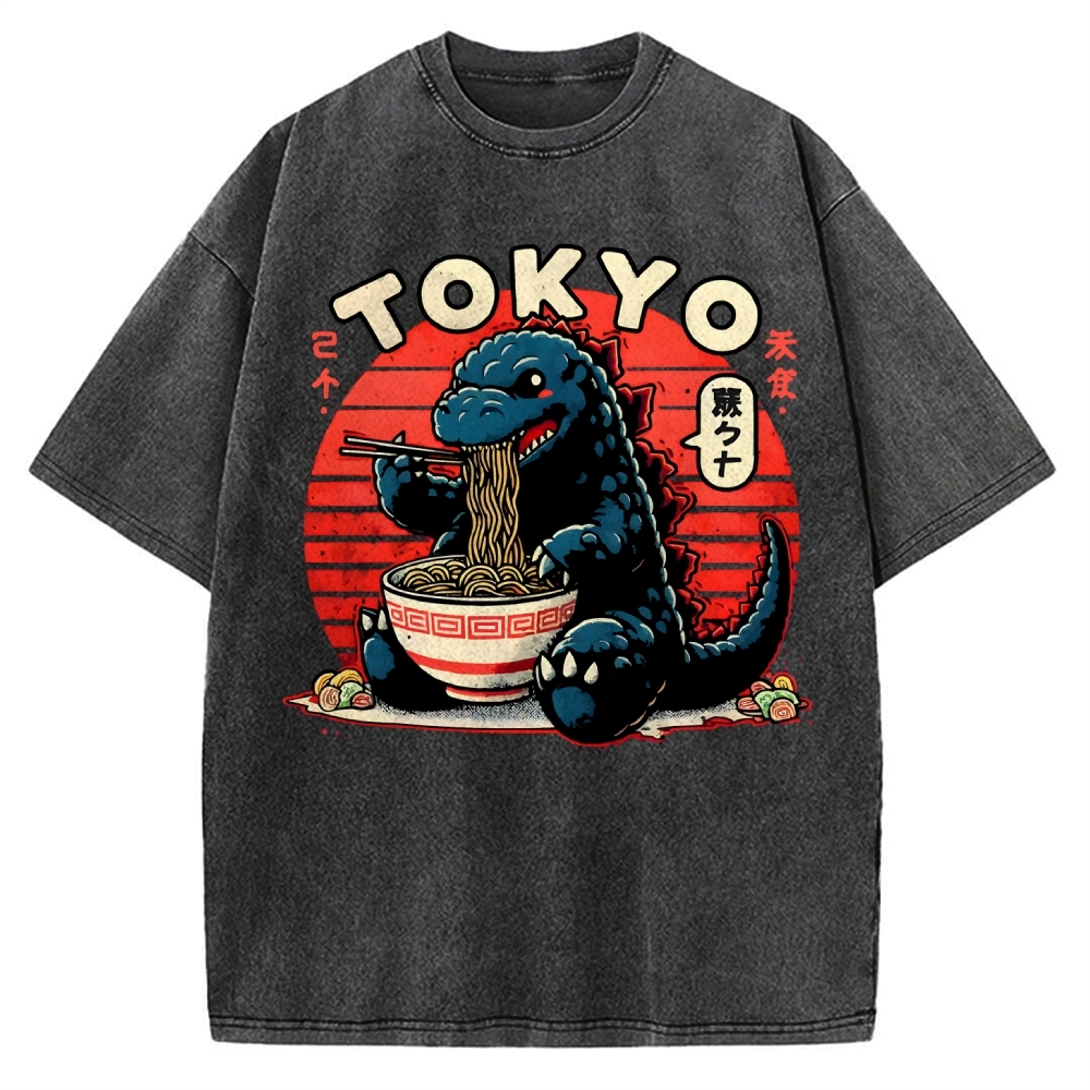 Japanese Giant Monster Eating Ramen Vintage Washed T-shirt