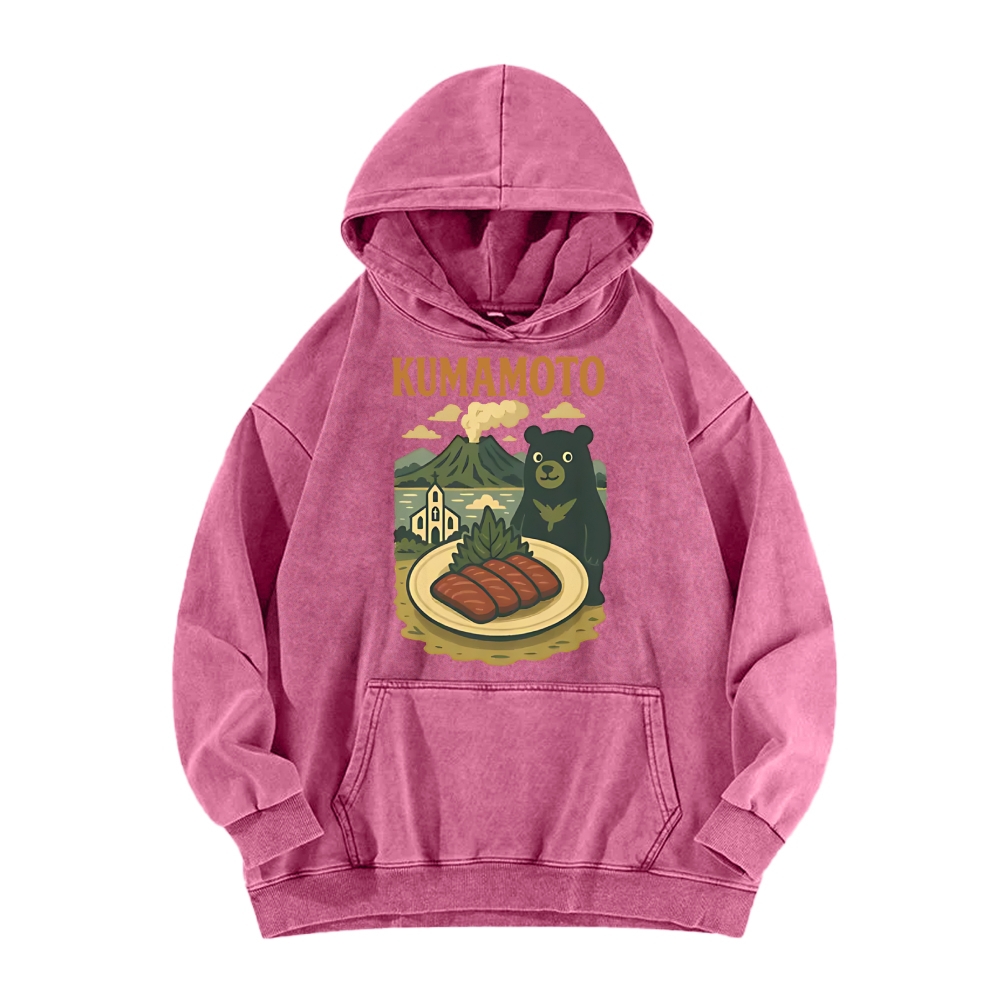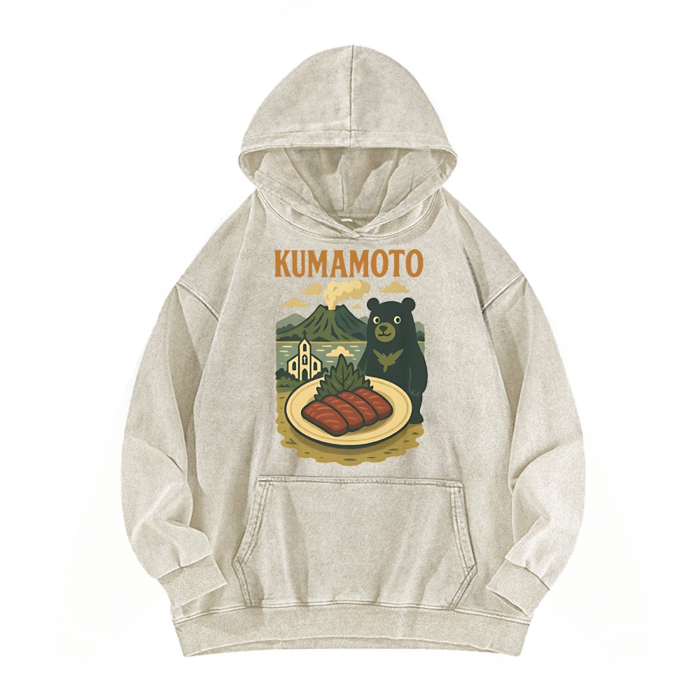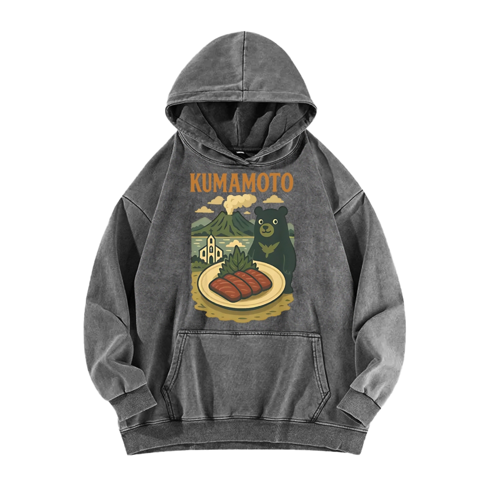 Kumamoto Mount Aso Black Bear Vintage Washed Hoodie