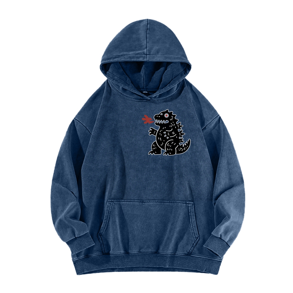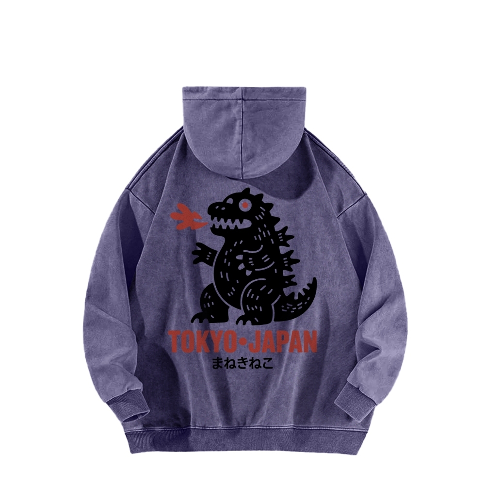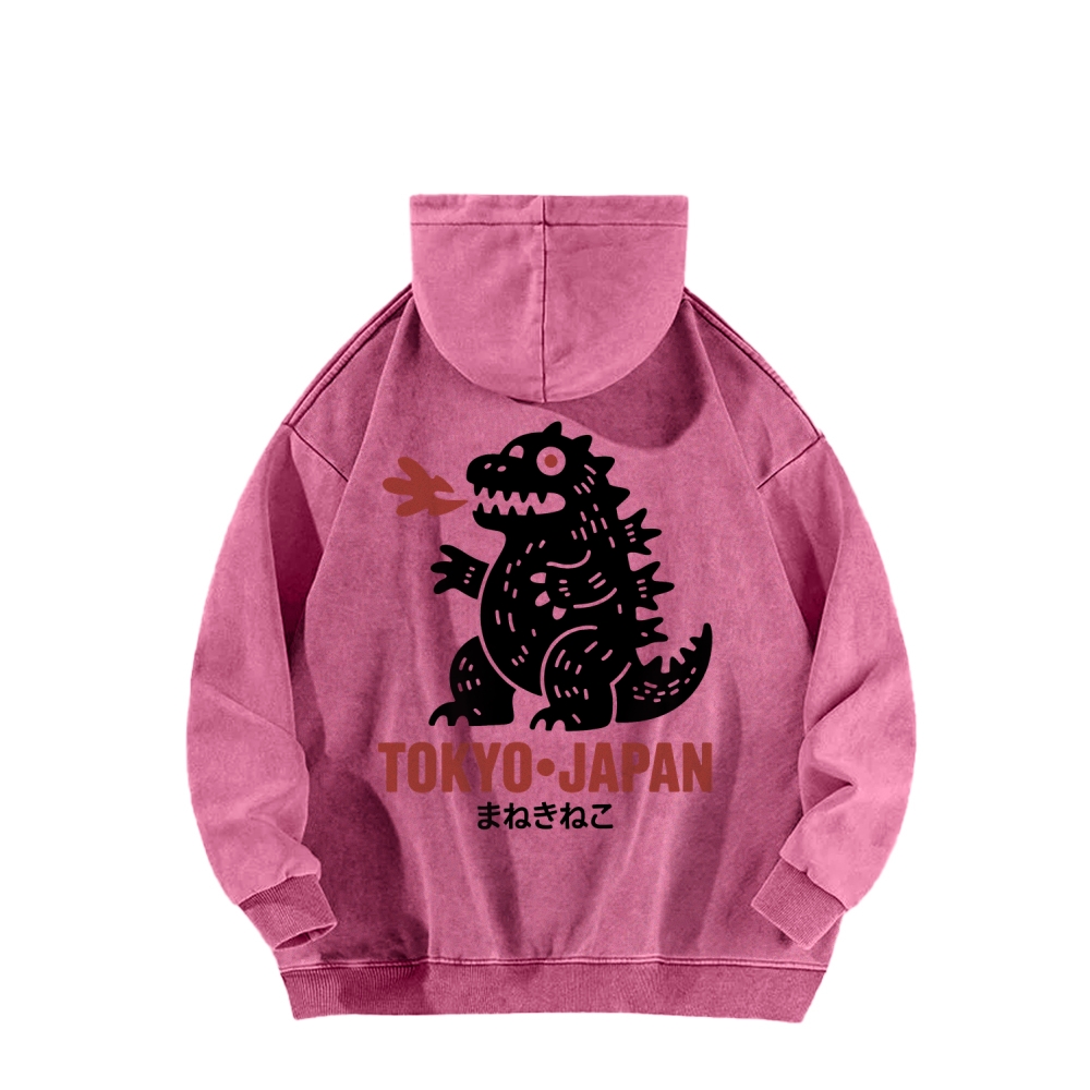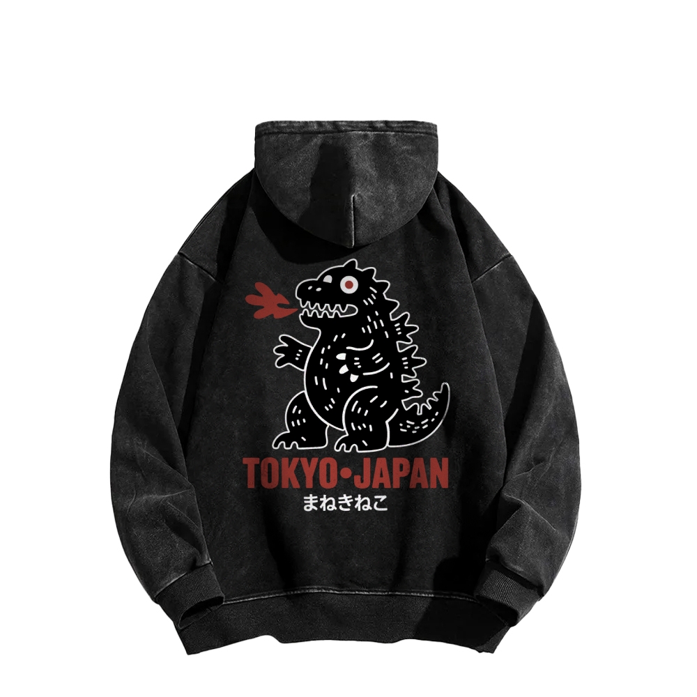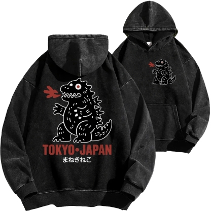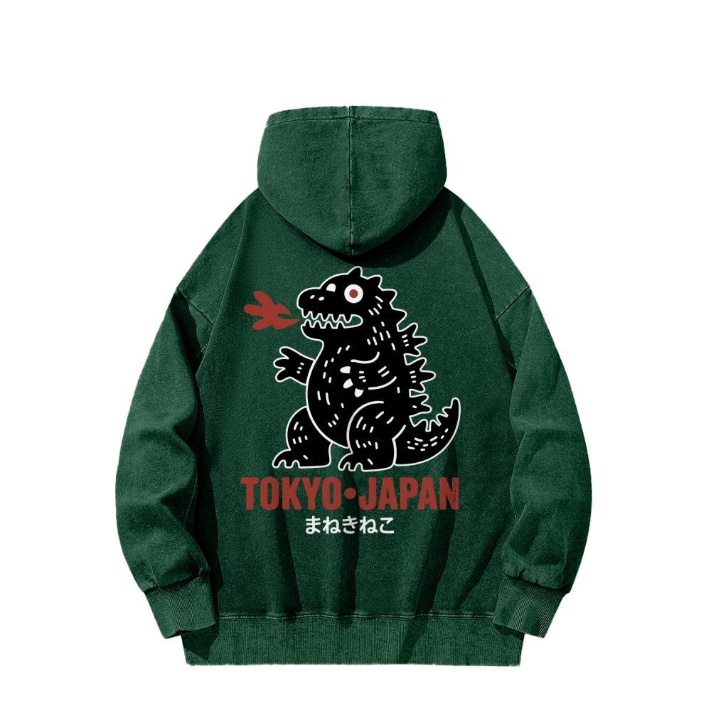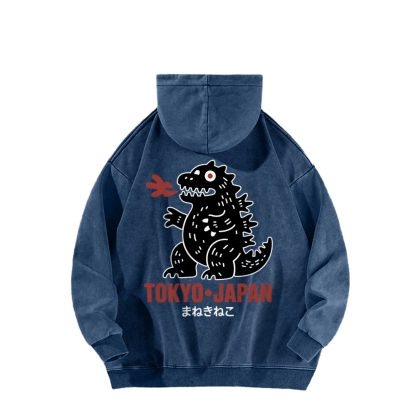 Lucky Monster Tokyo Japan Front And Back Printing Vintage Washed Hoodie