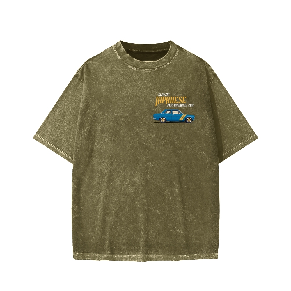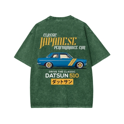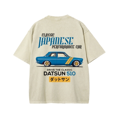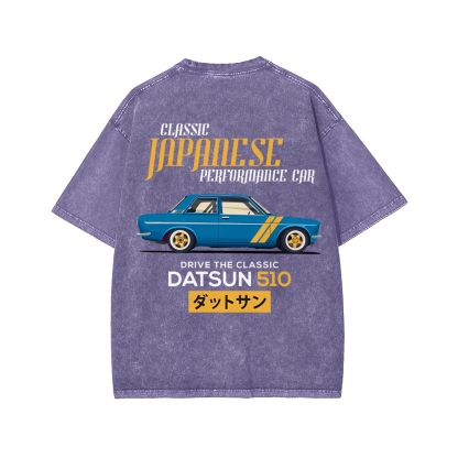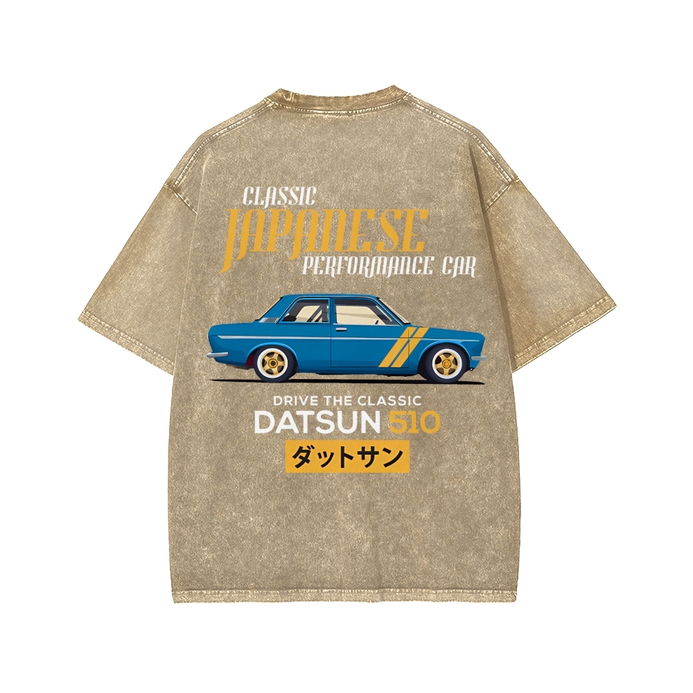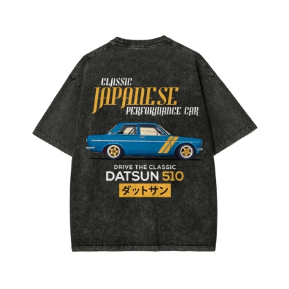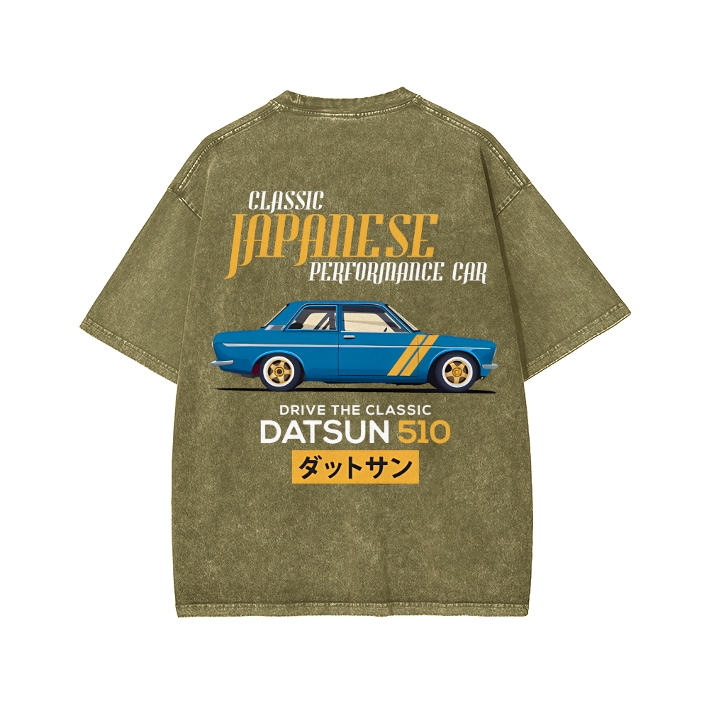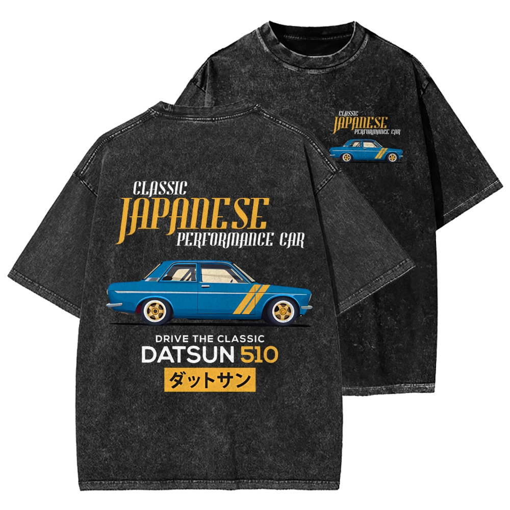Nissan Datsun 510 Car Front And Back Printing Washed T-shirt