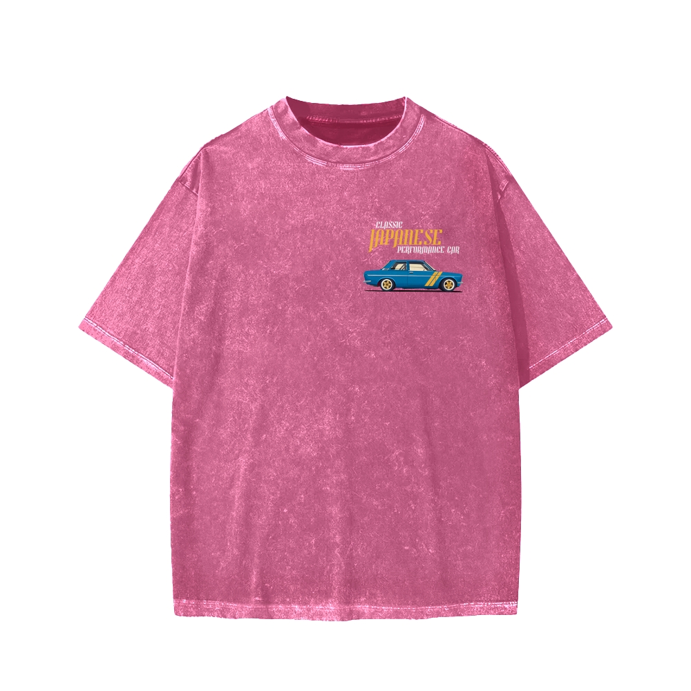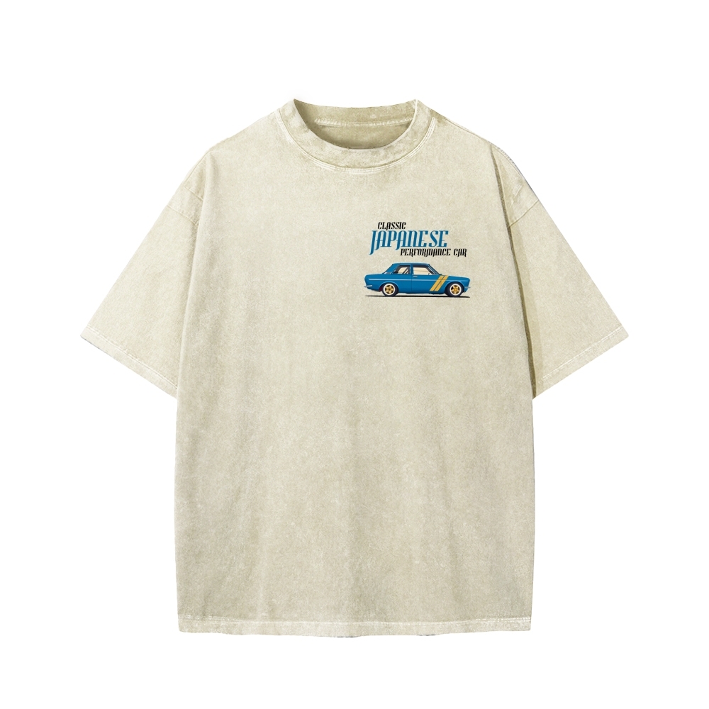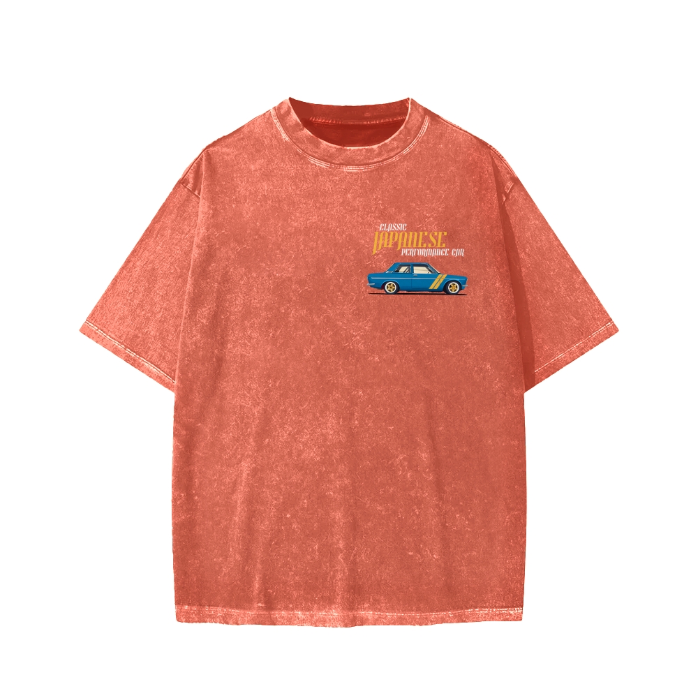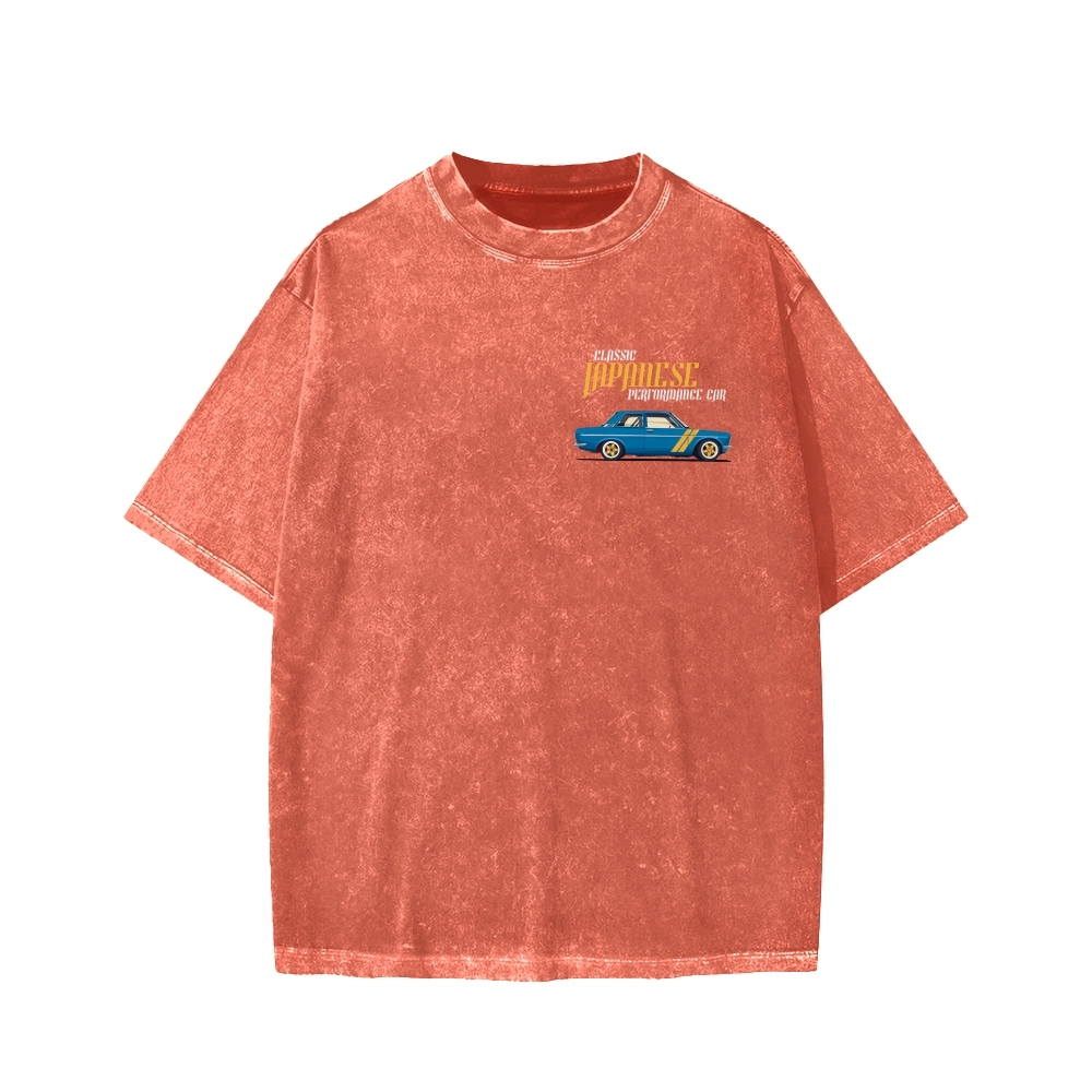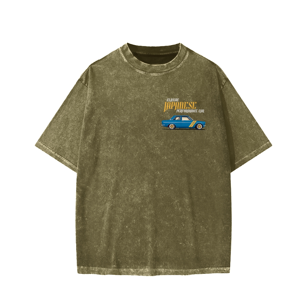 Nissan Datsun 510 Car Front And Back Printing Washed T-shirt