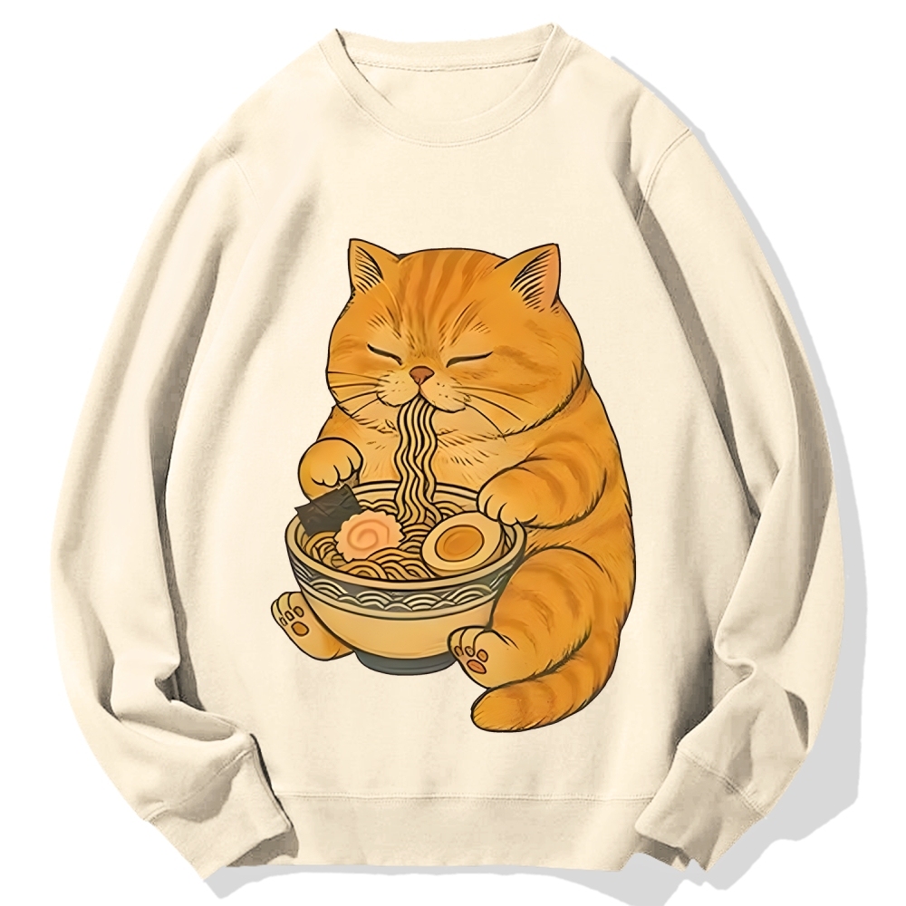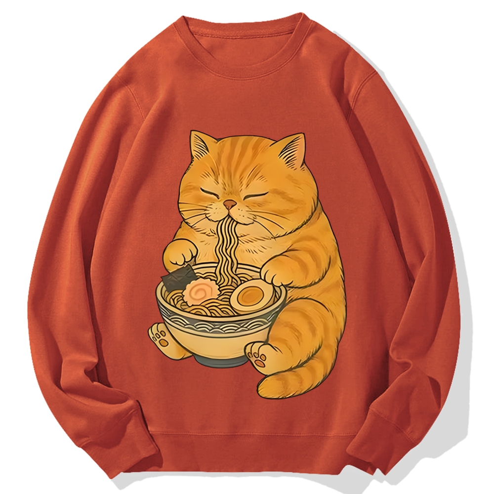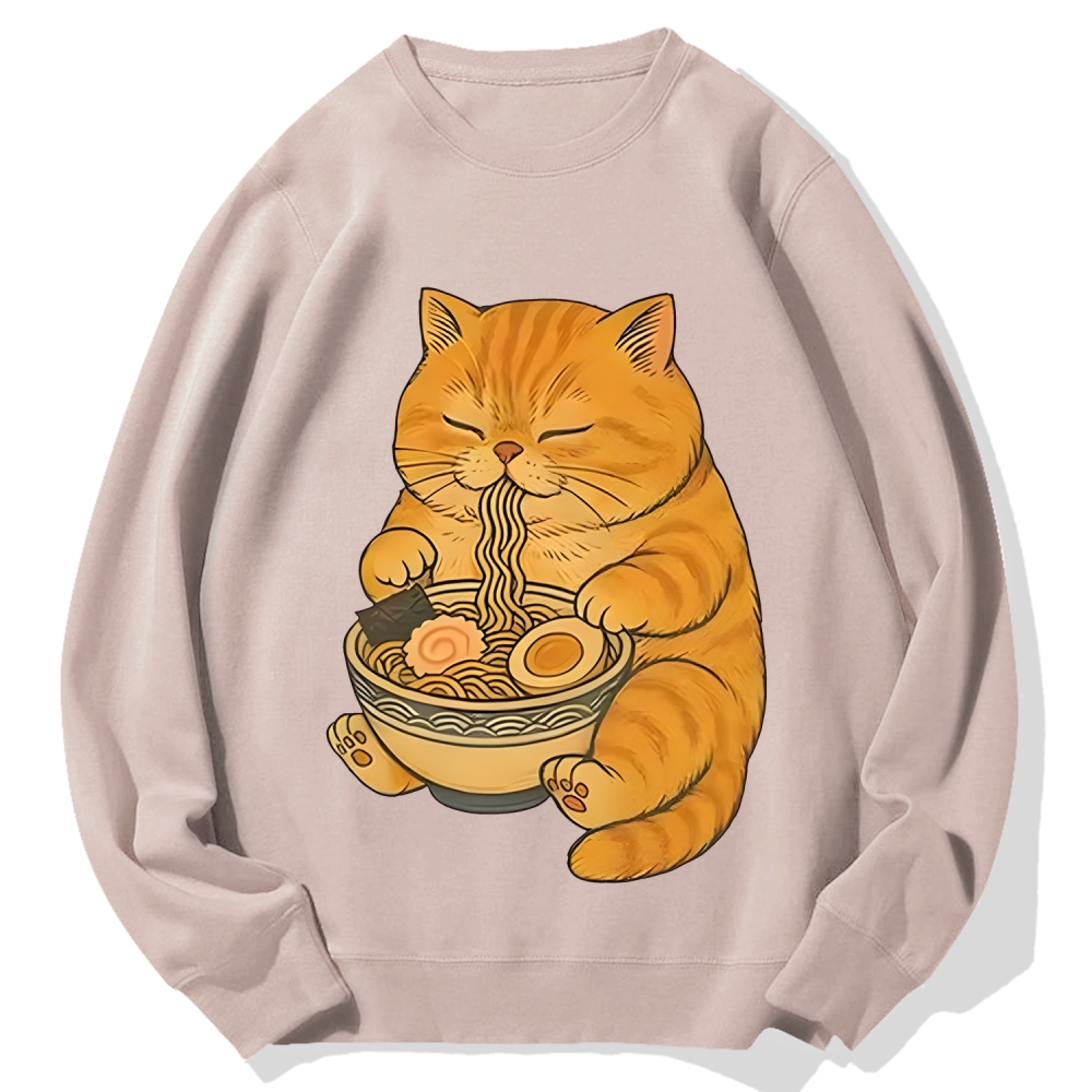 Orange Cat Eating Ramen Cotton Sweatshirt
