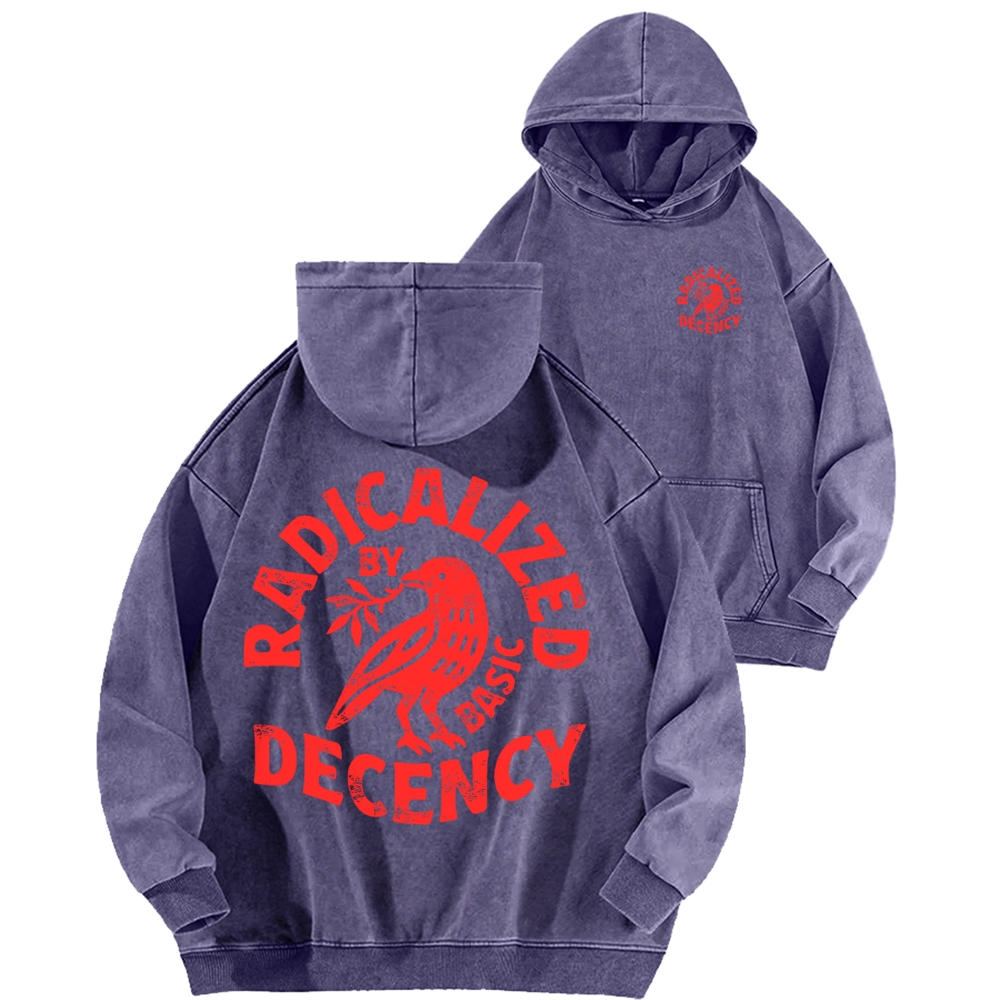 Radicalized By Basic Decency Front And Back Printing Vintage Washed Hoodie