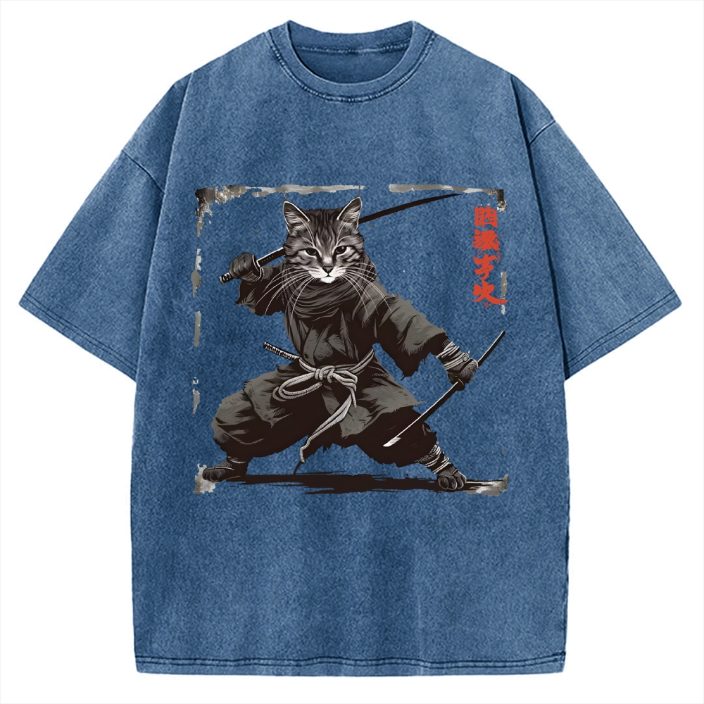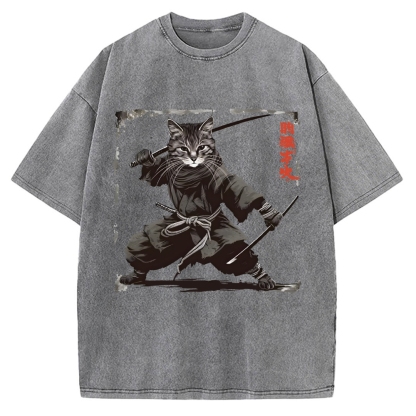 Samurai Cat Vintage Washed T-shirt