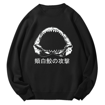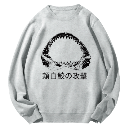 Sawtooth Shark Attacks Japan Round Neck Sweatshirt