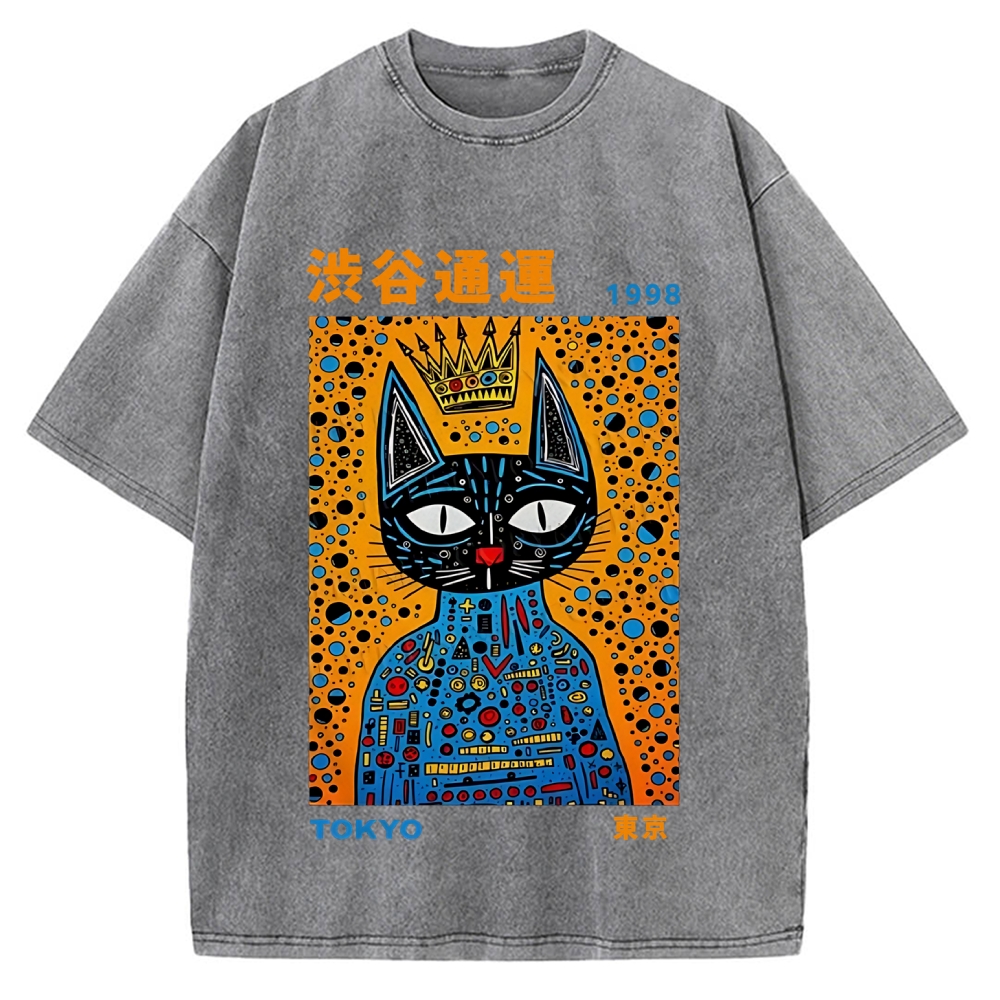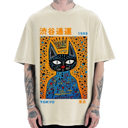Shibuya Tokyo Cat Art Vintage Washed T-shirt
