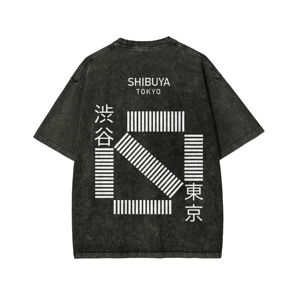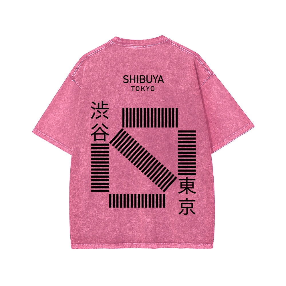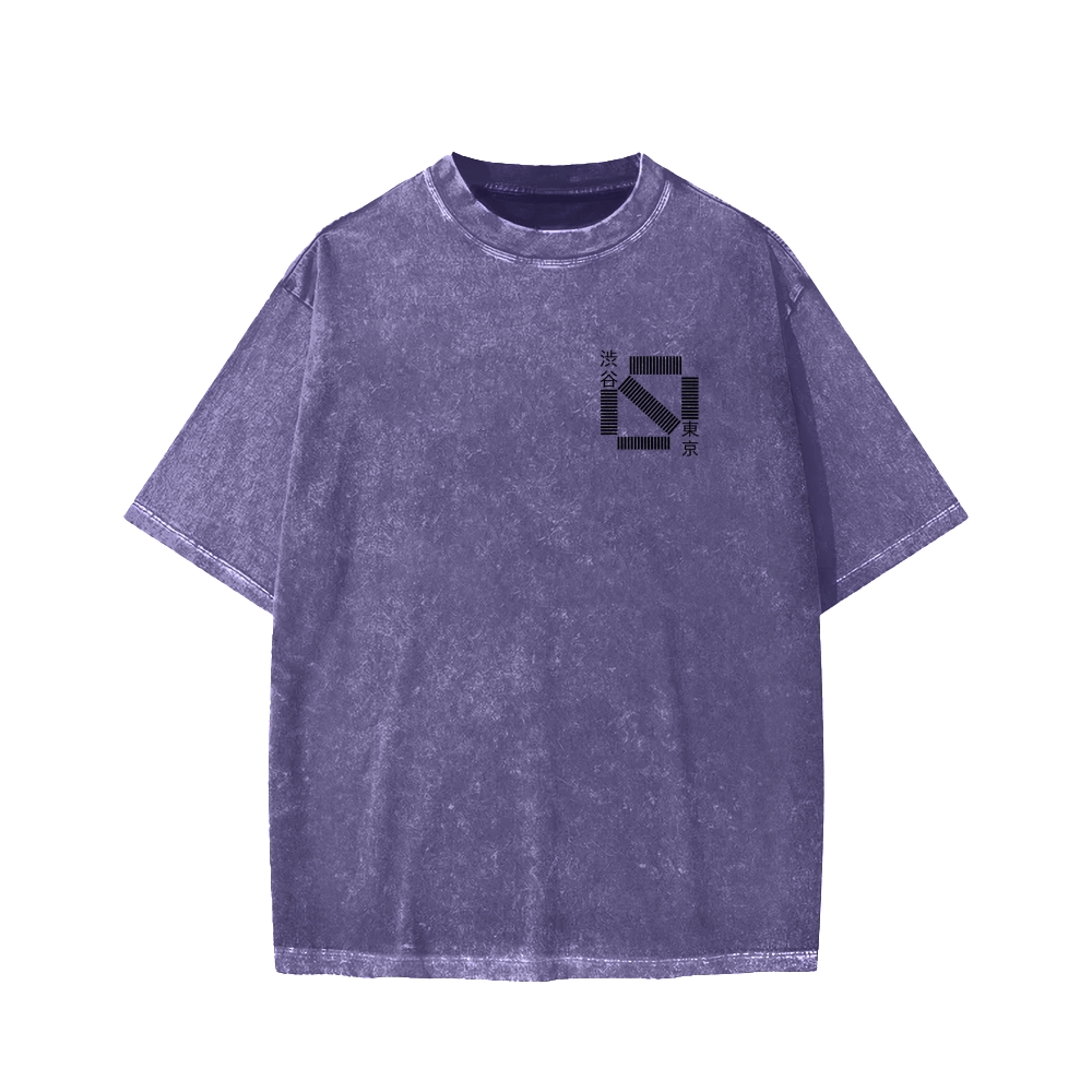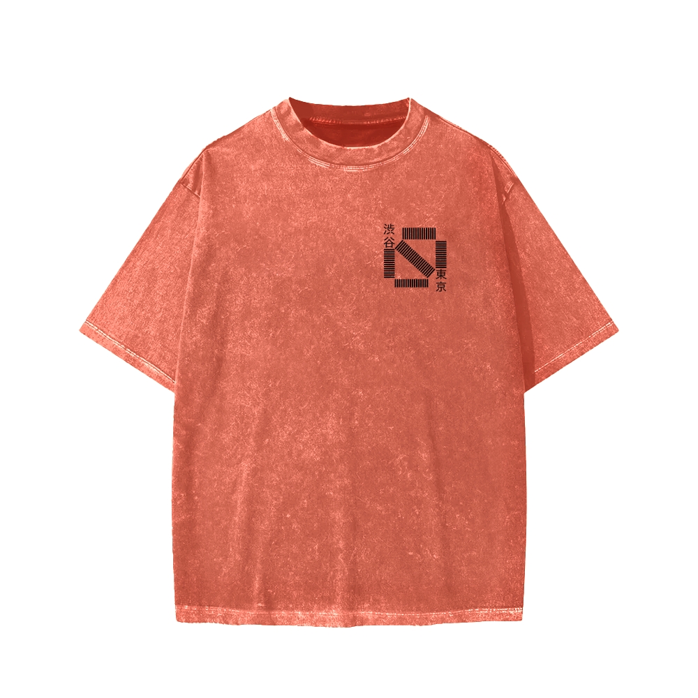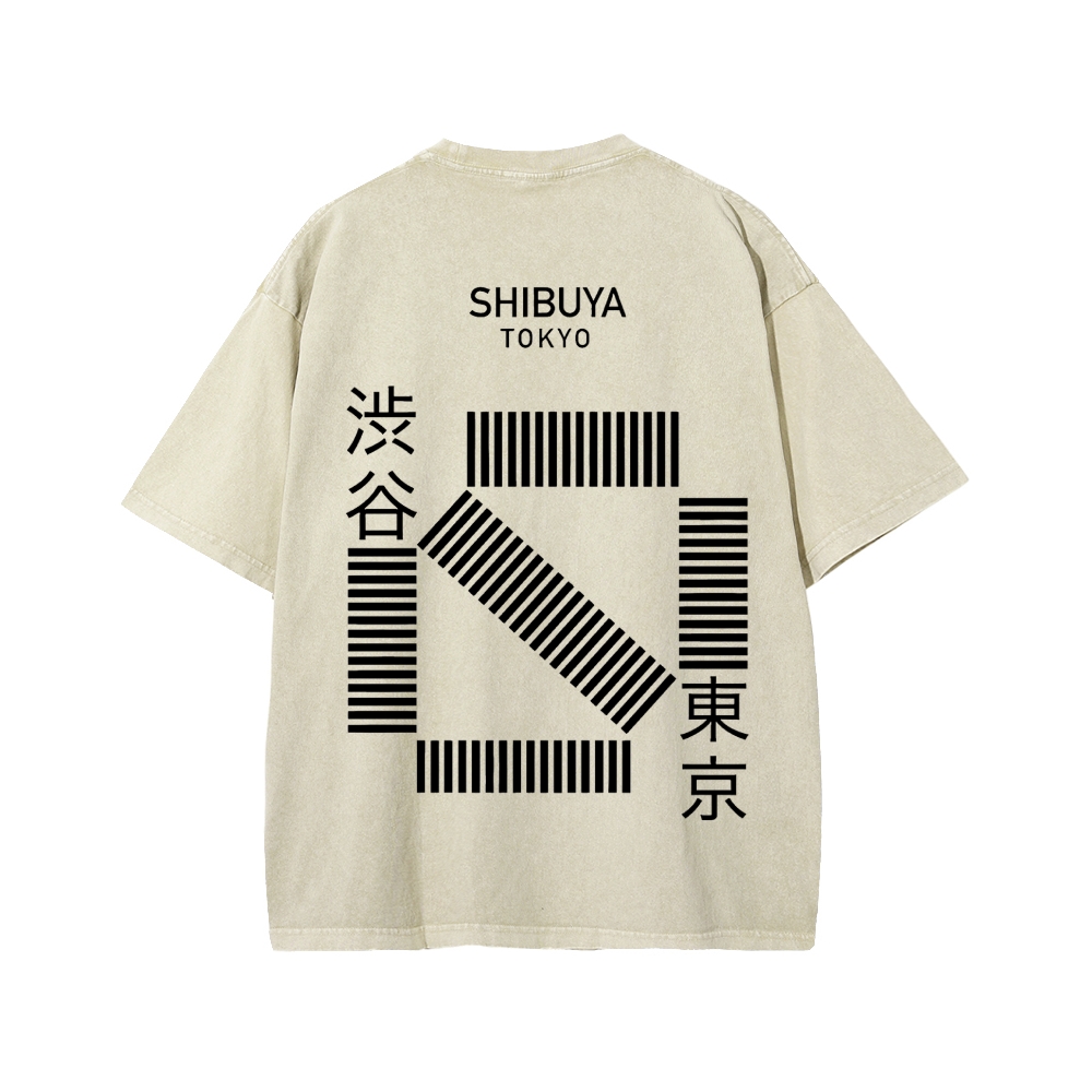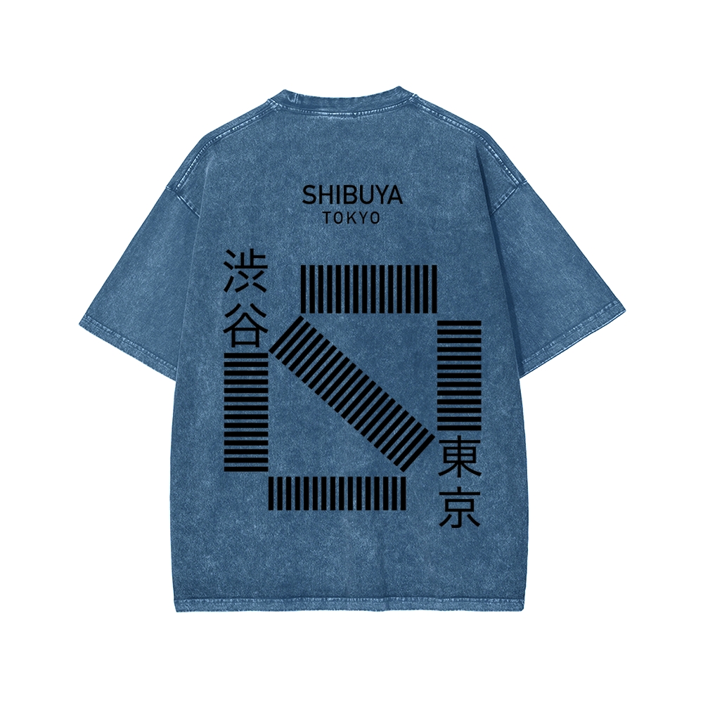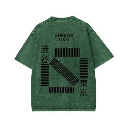 Shibuya Tokyo Front And Back Printing Washed T-shirt