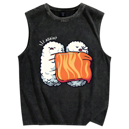 Sleeping Sushi Again Vintage Distressed Washed Tank Top