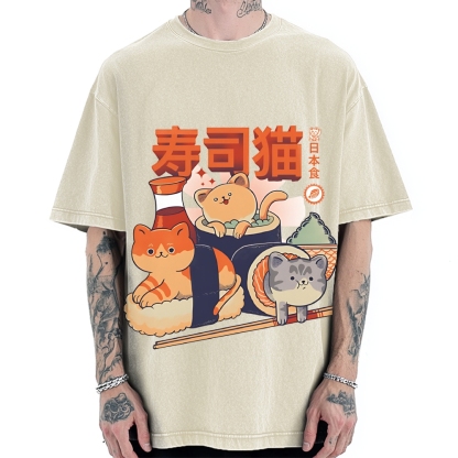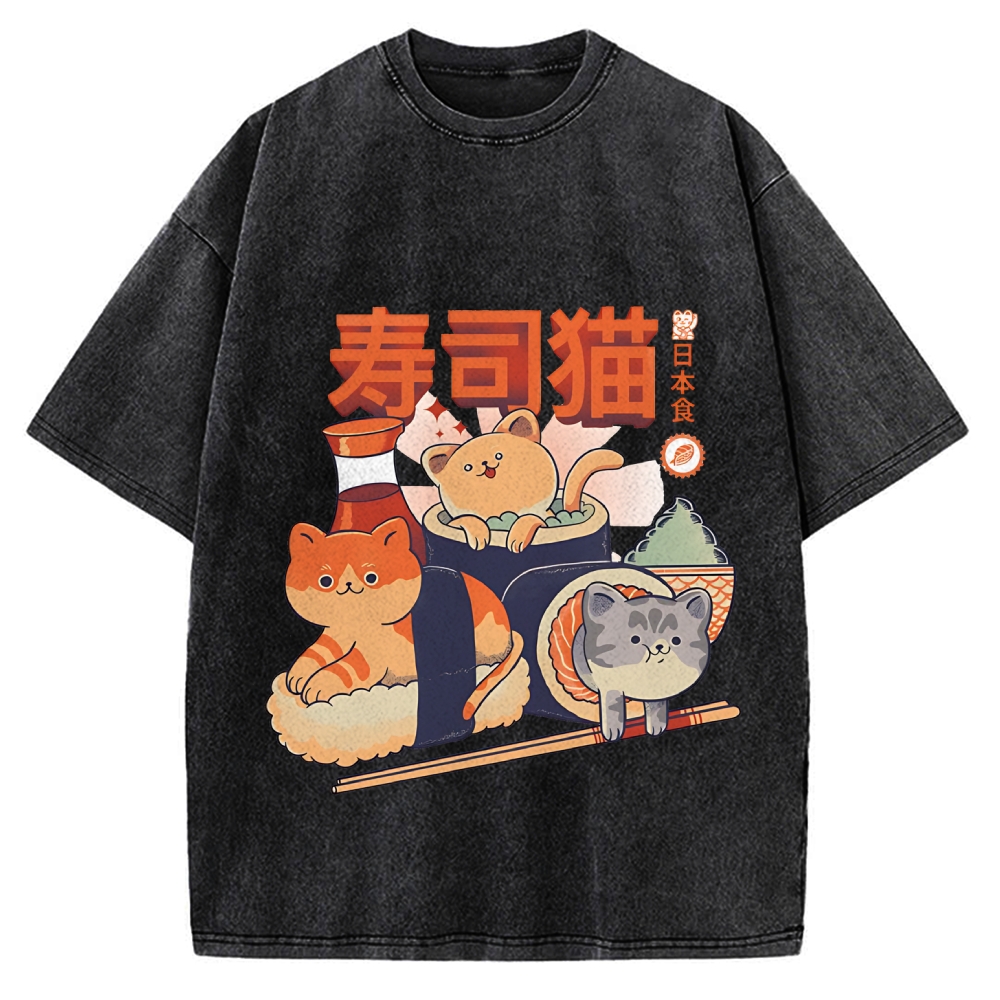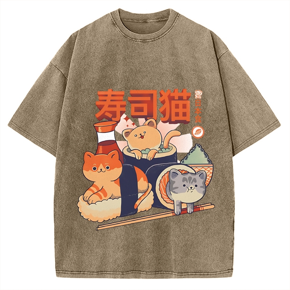 Sushi Cats Cute Animal Vintage Washed T-shirt