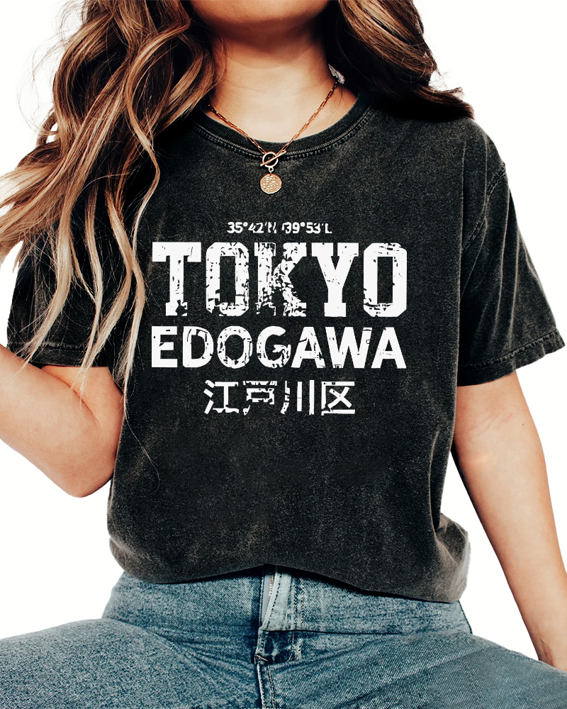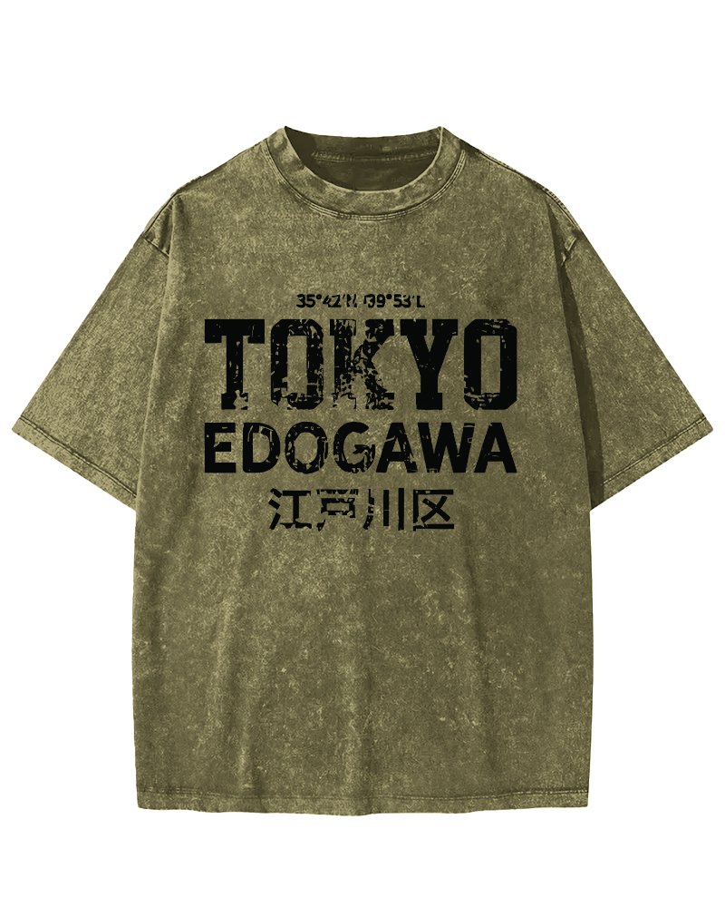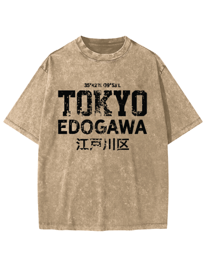 Tokyo Edogawa ku Retro Vintage Washed T-shirt