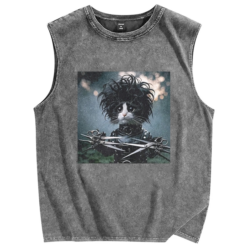 Wacky cat Vintage Distressed Washed Tank Top