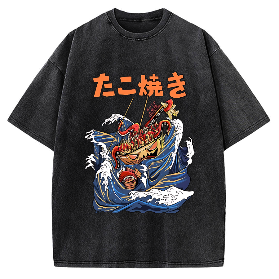 Takoyaki Octopus ball monster in the ocean Vintage Washed T-shirt