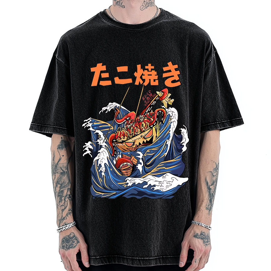 Japanese Ramen Monster Ukiyoe Vintage Washed T-shirt