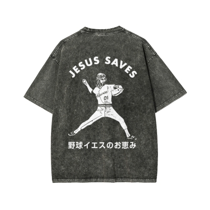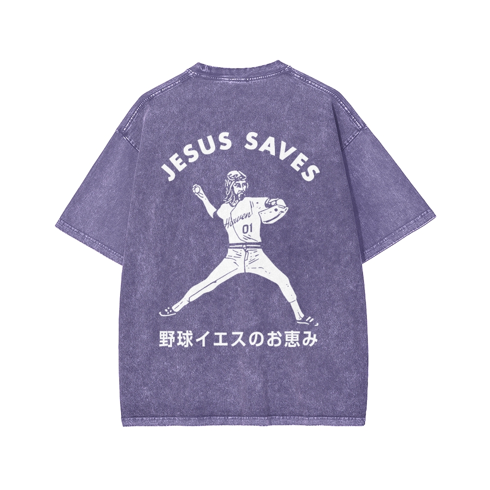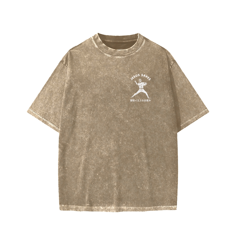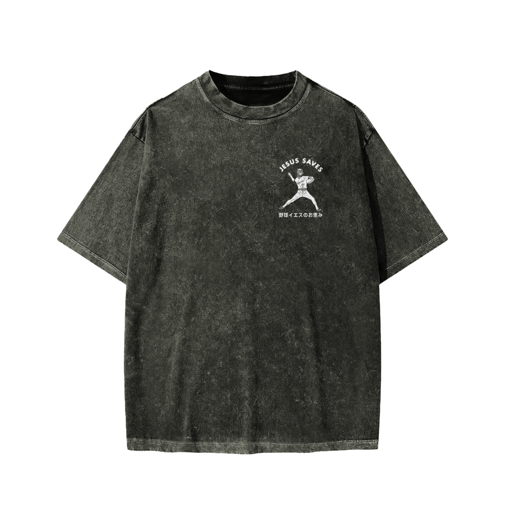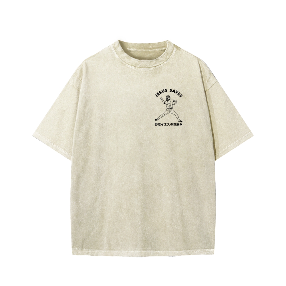 Baseball Jesus' Blessing Front And Back Printing Washed T-shirt