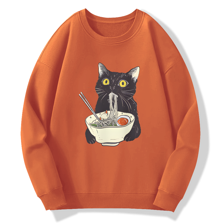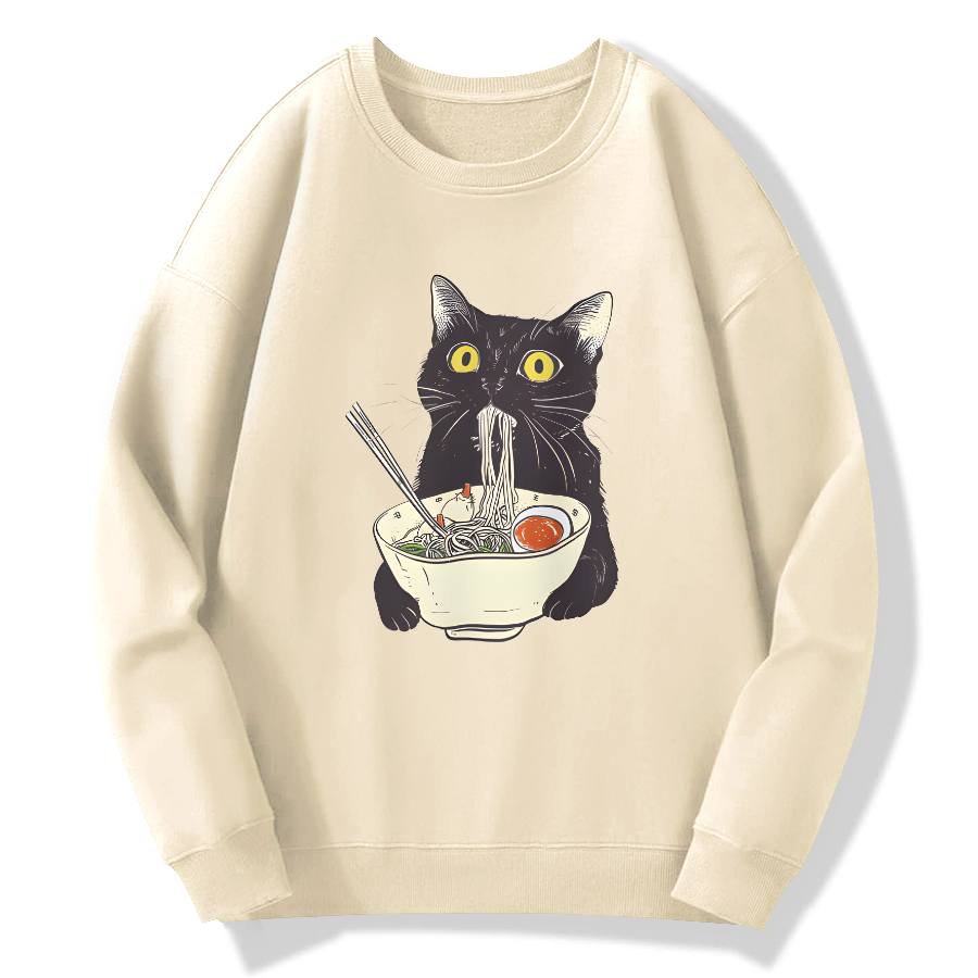 Black cats who like Lamian Noodles Cotton Pullover Sweatshirt