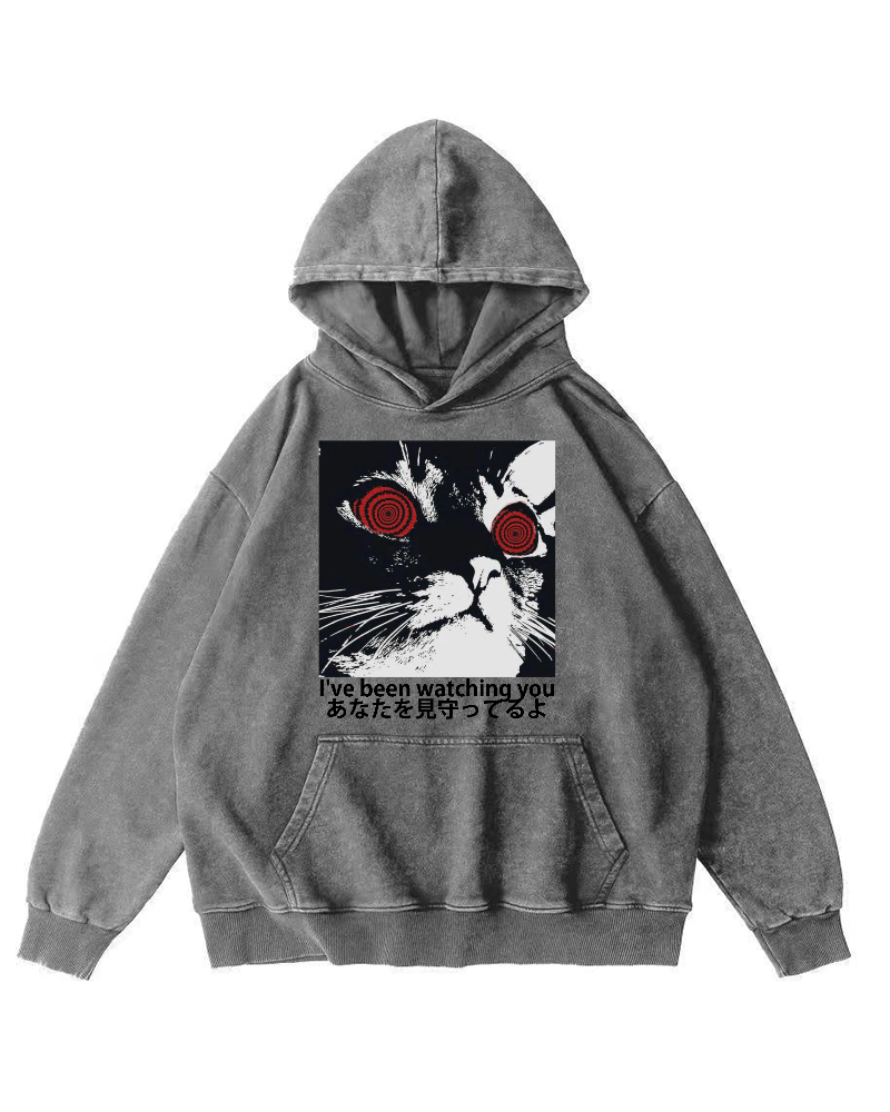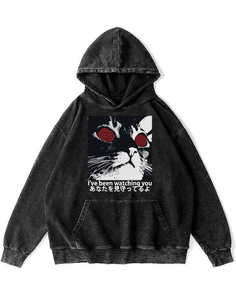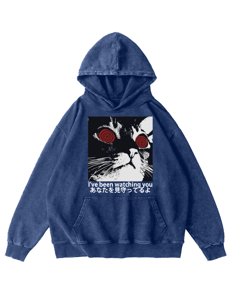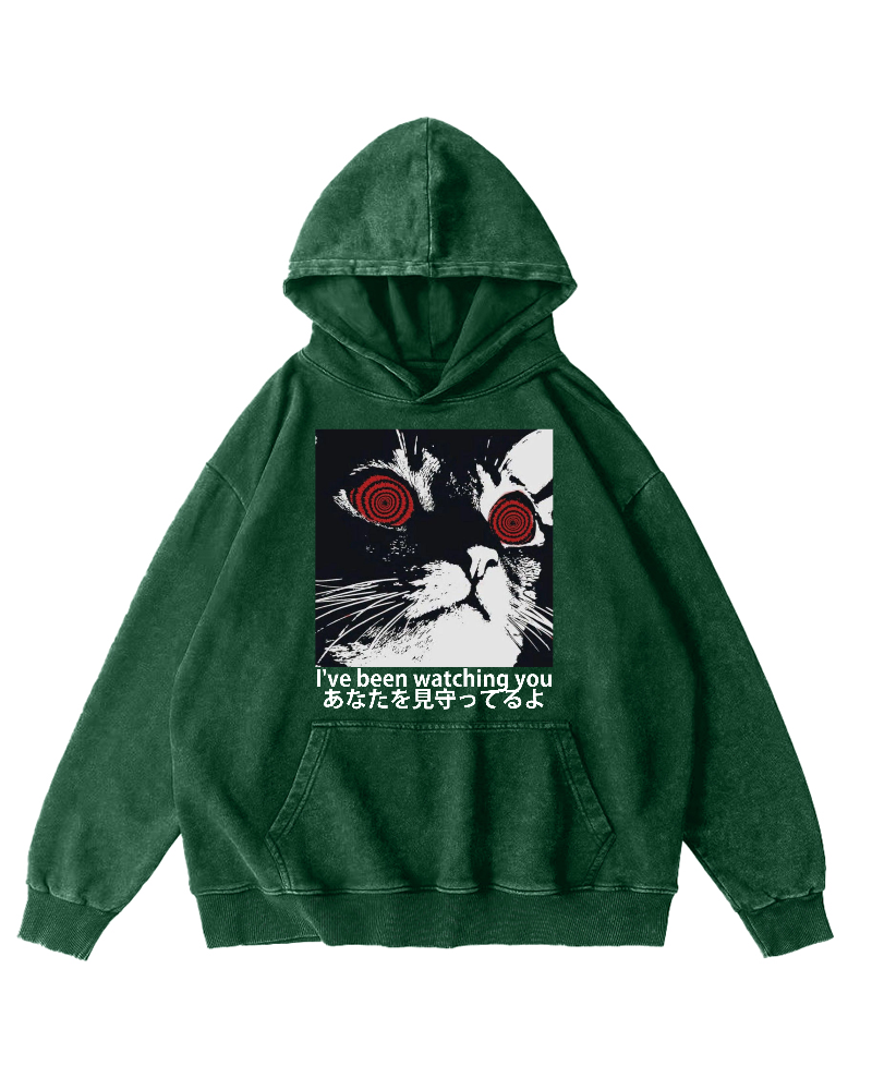Cat is watching you Vintage Washed Hoodie