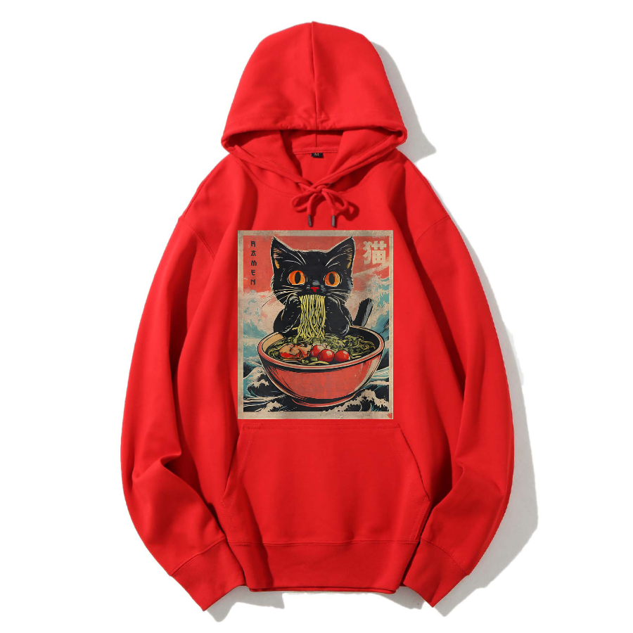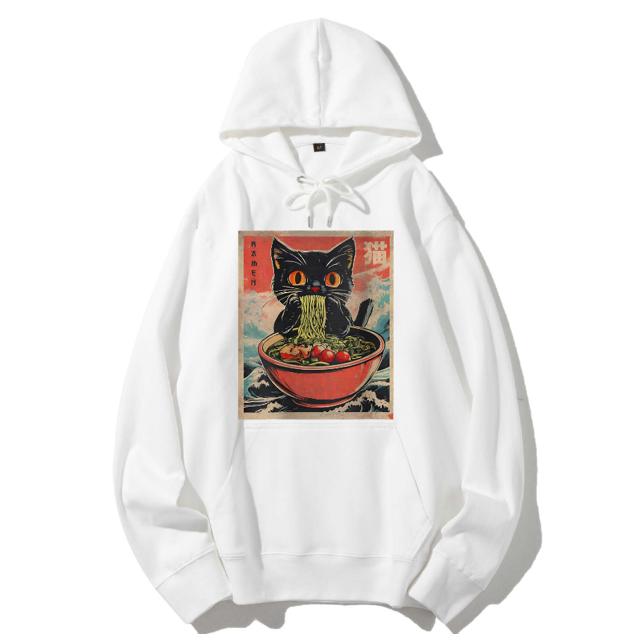 Cat Lamian Noodles Vintage Cotton Hoodie