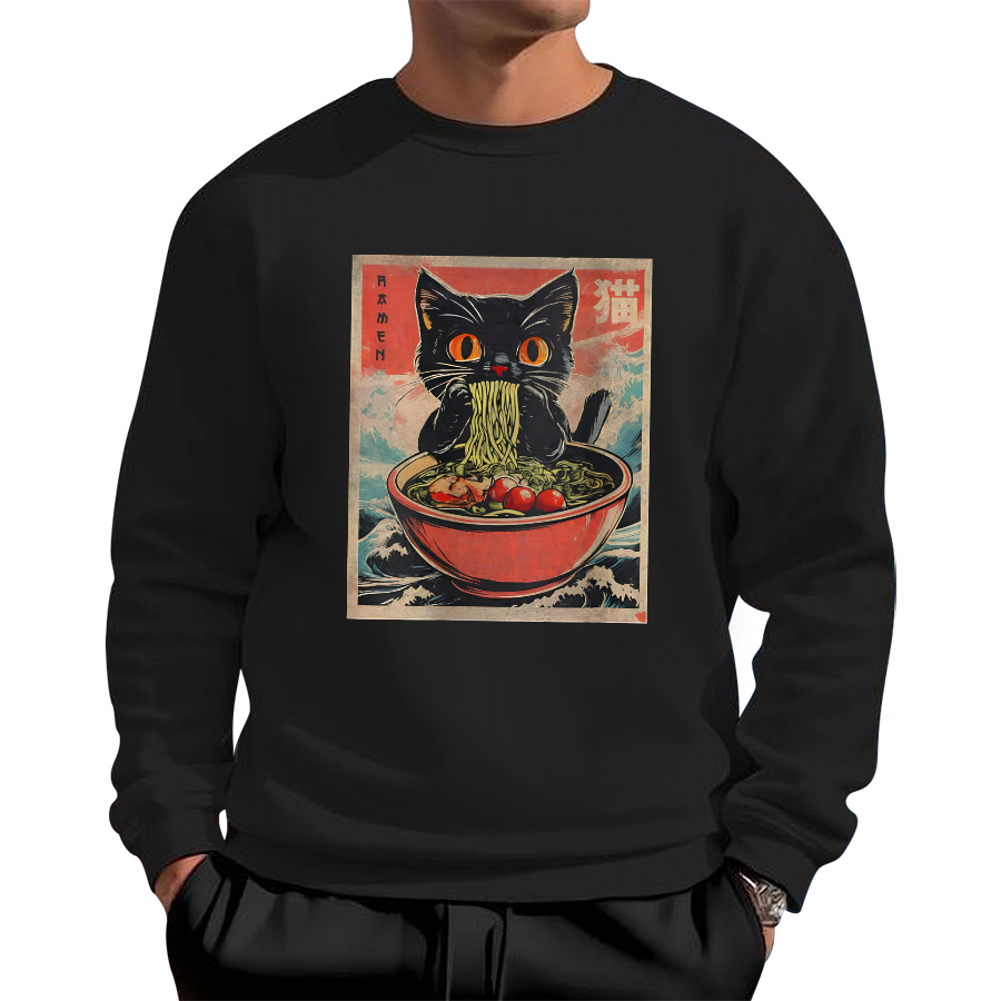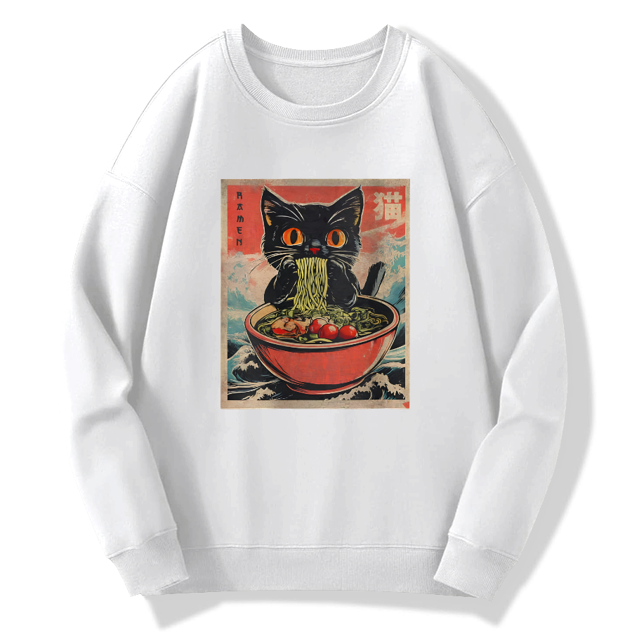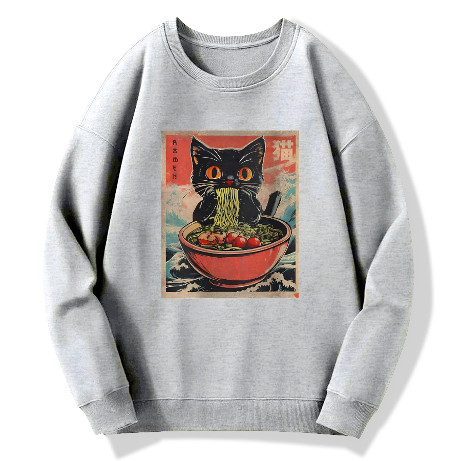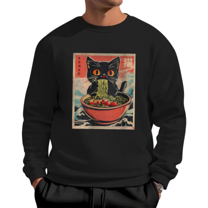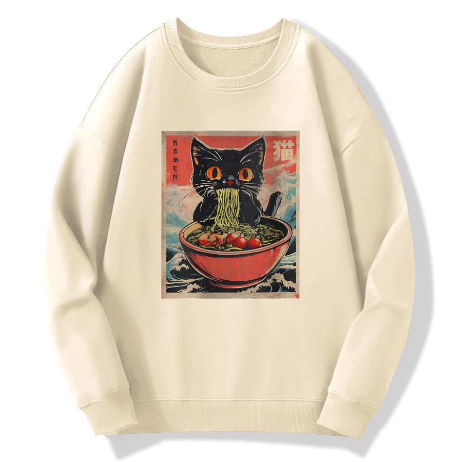 Cat Lamian Noodles Vintage Cotton Pullover Sweatshirt