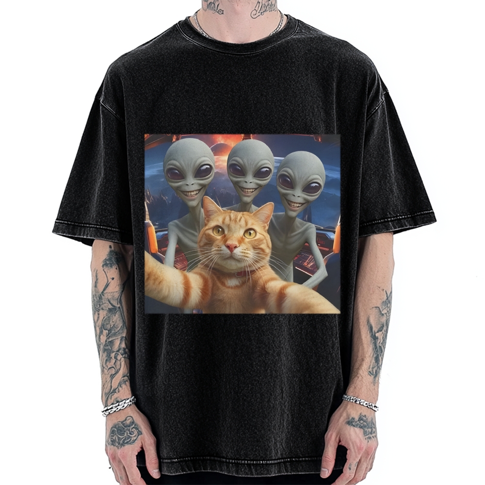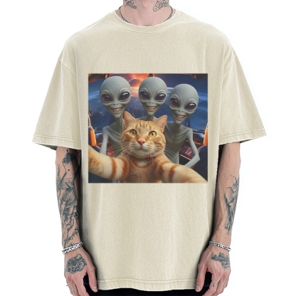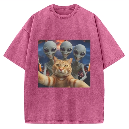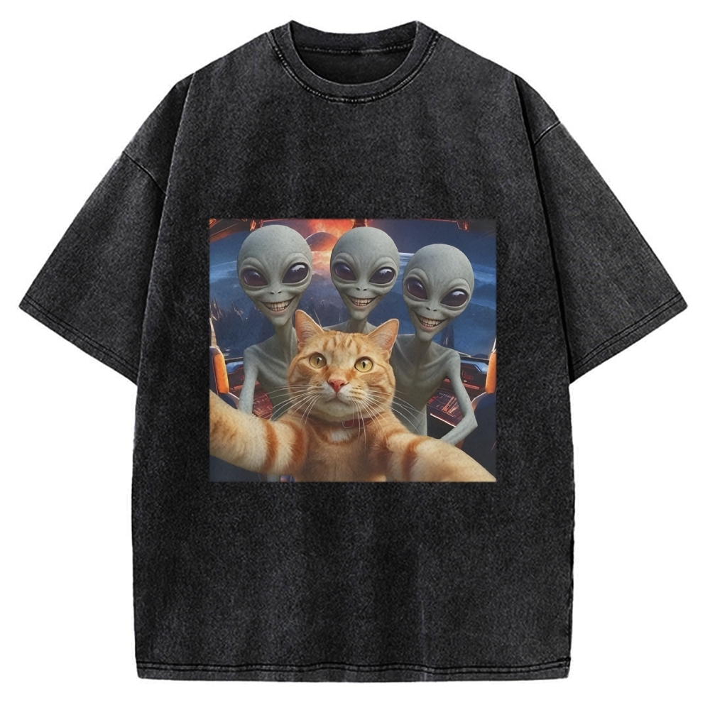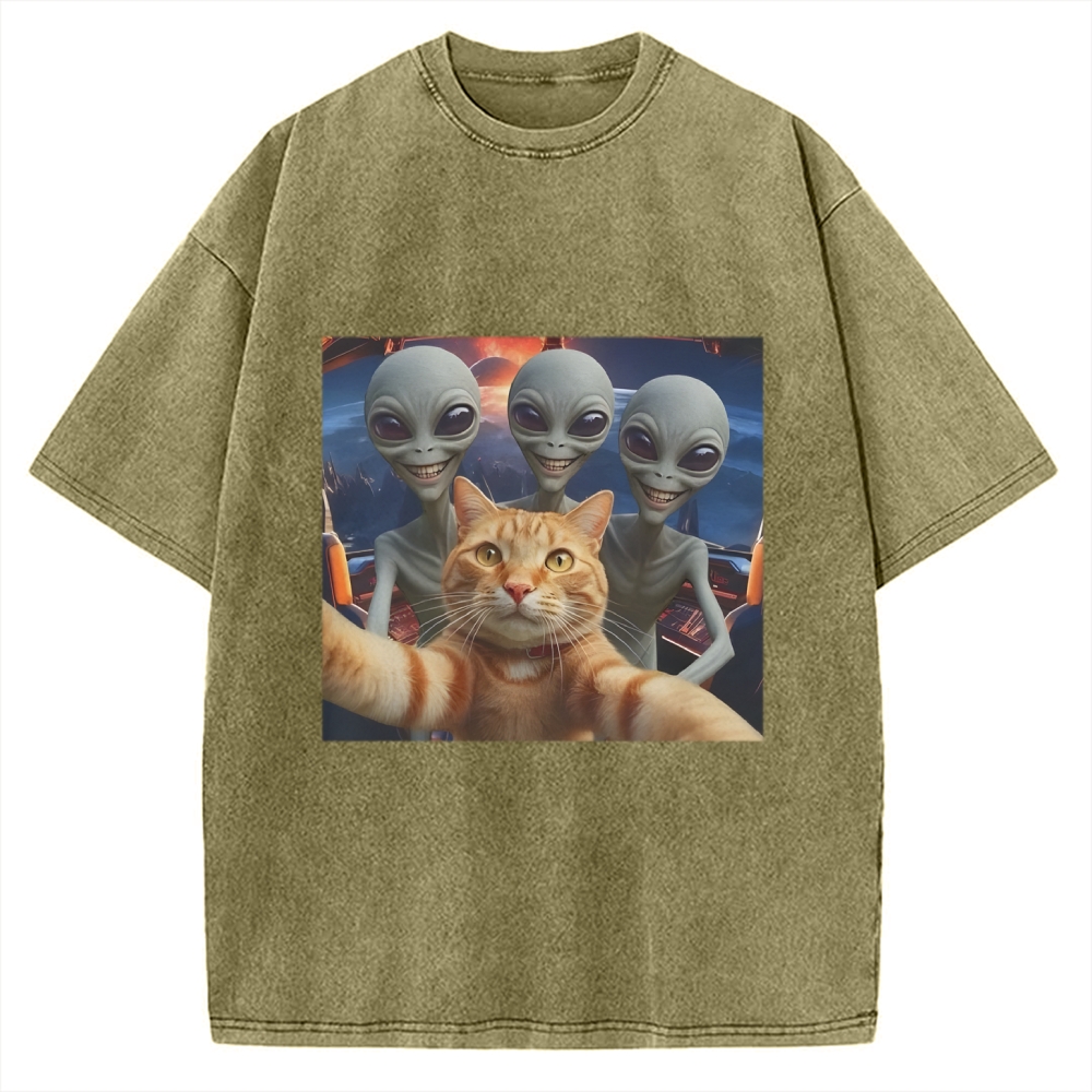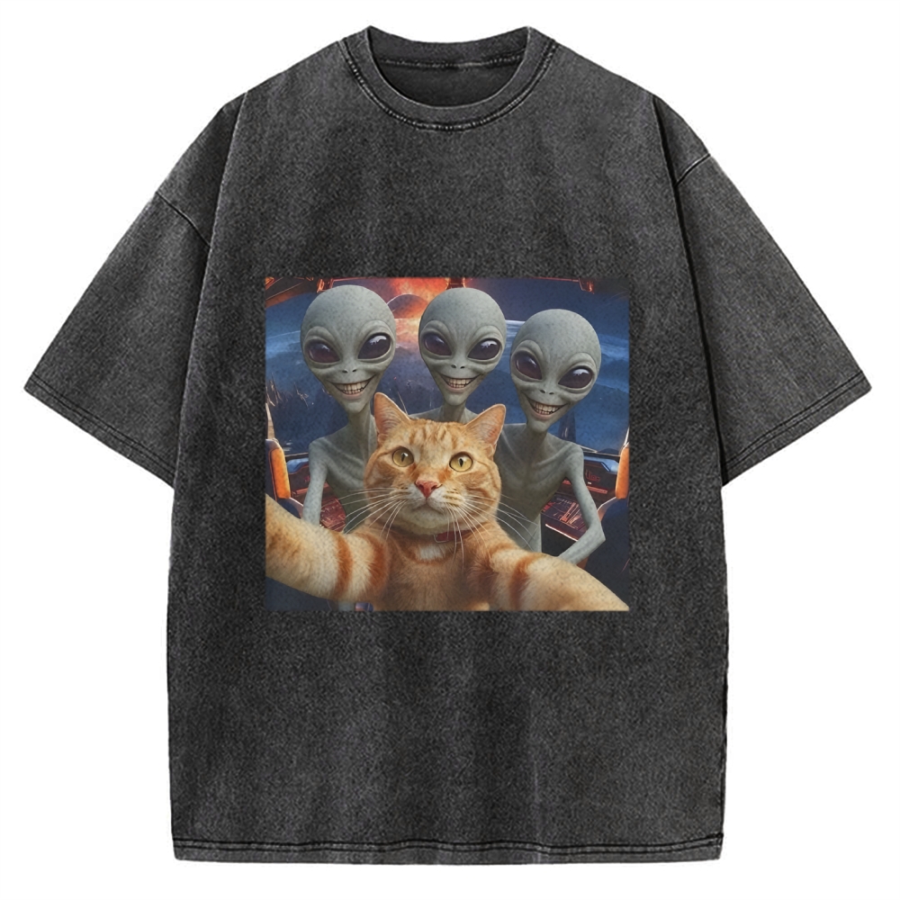 Cat Selfie Alien Greys Vintage Washed T-shirt