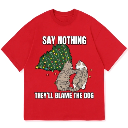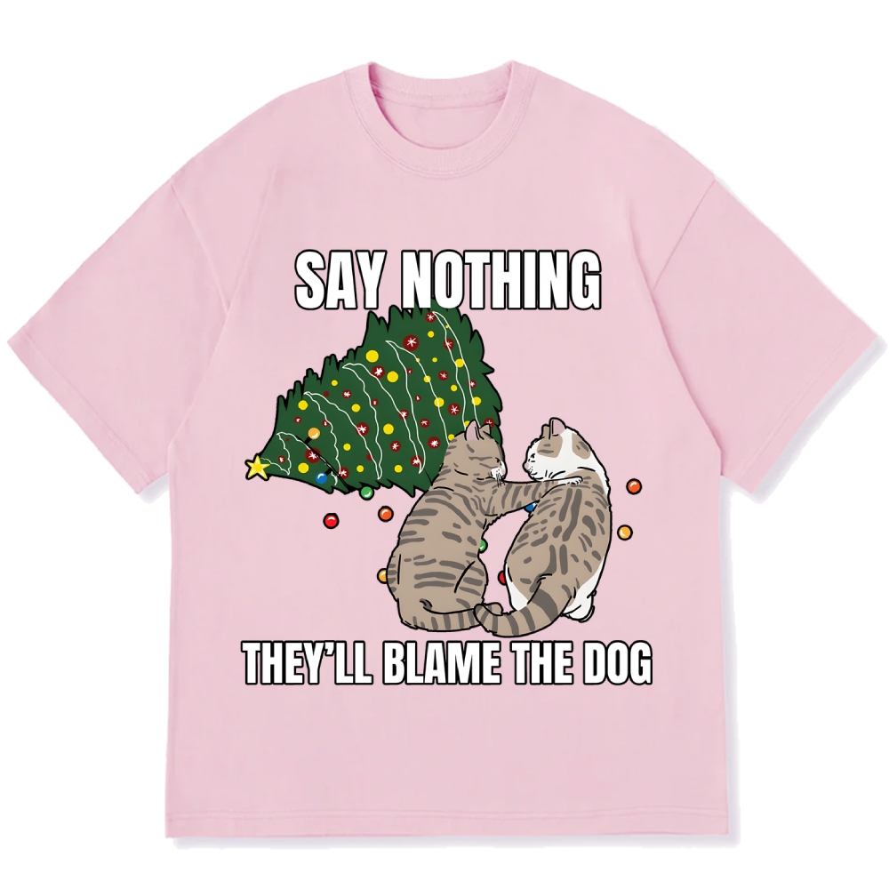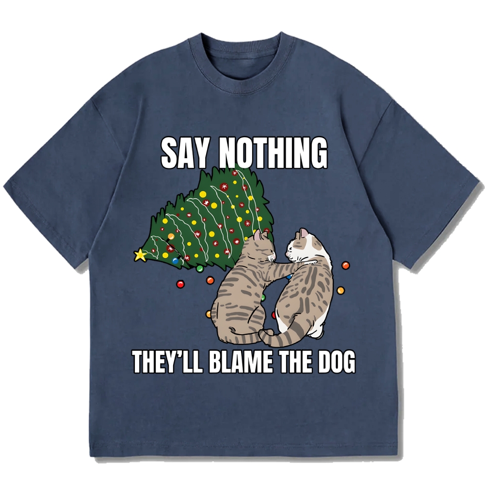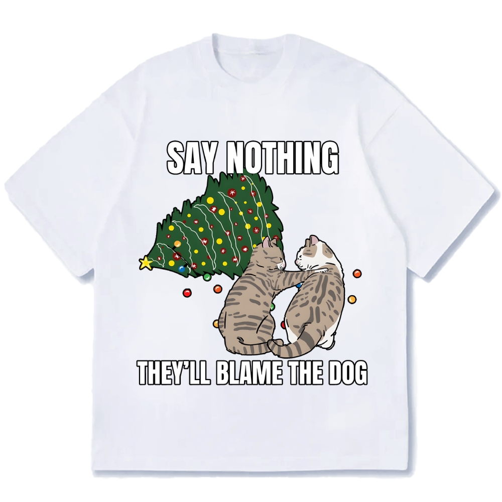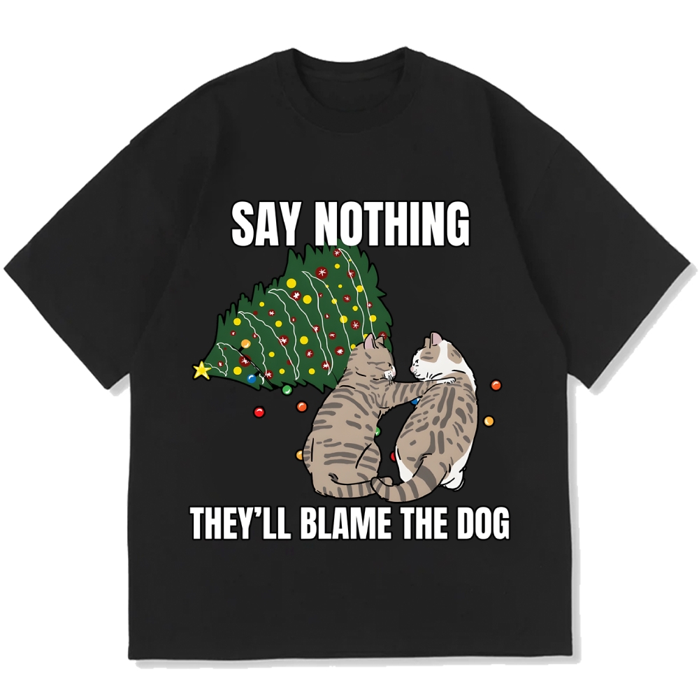 Christmas Cat meme blame the dog Cotton casual T-shirt