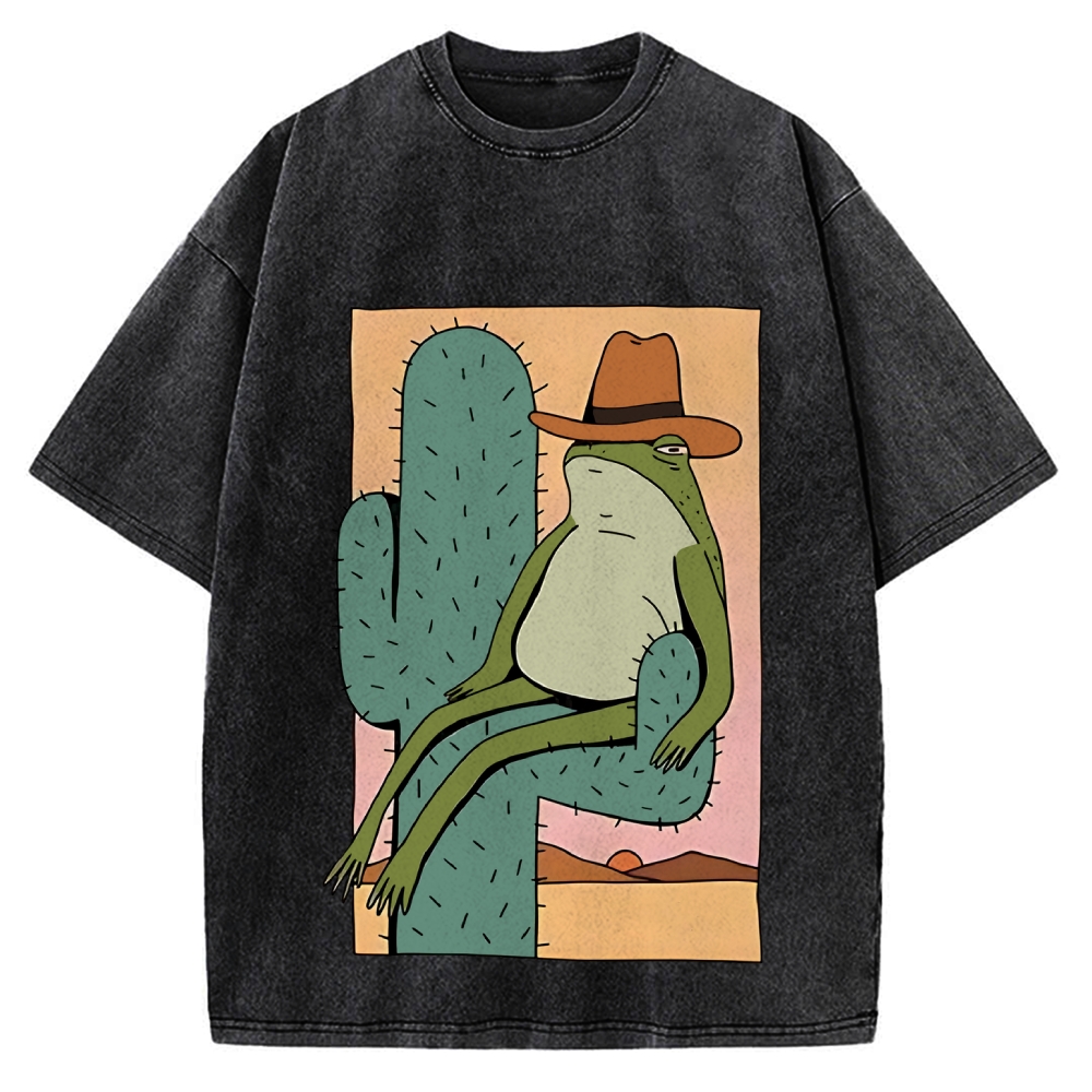 Designed Cowboy Frog Vintage Washed T-shirt