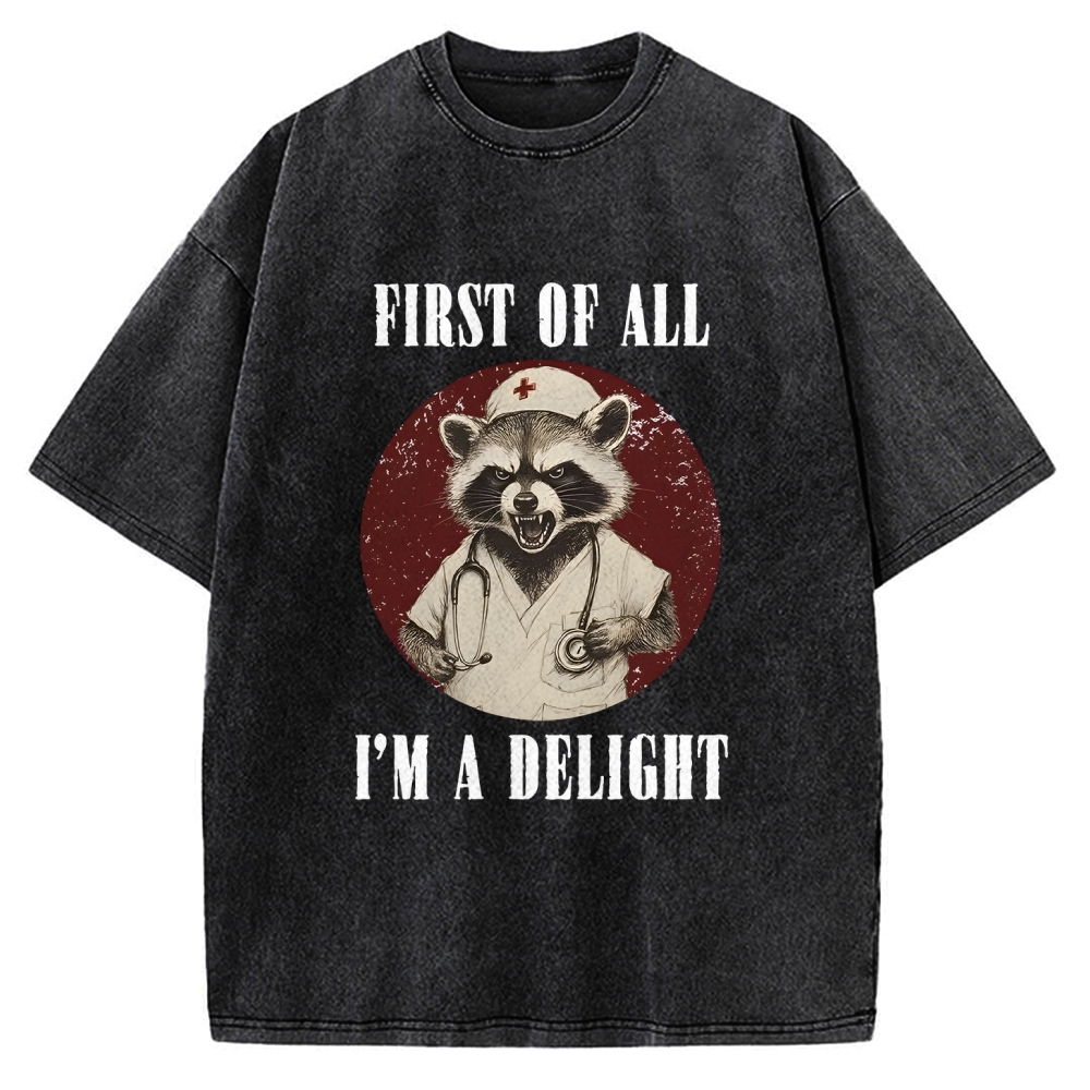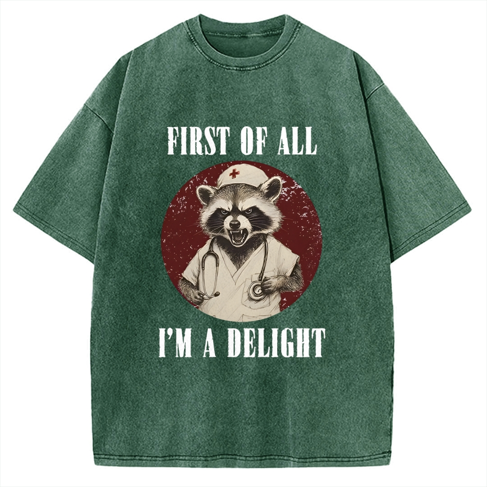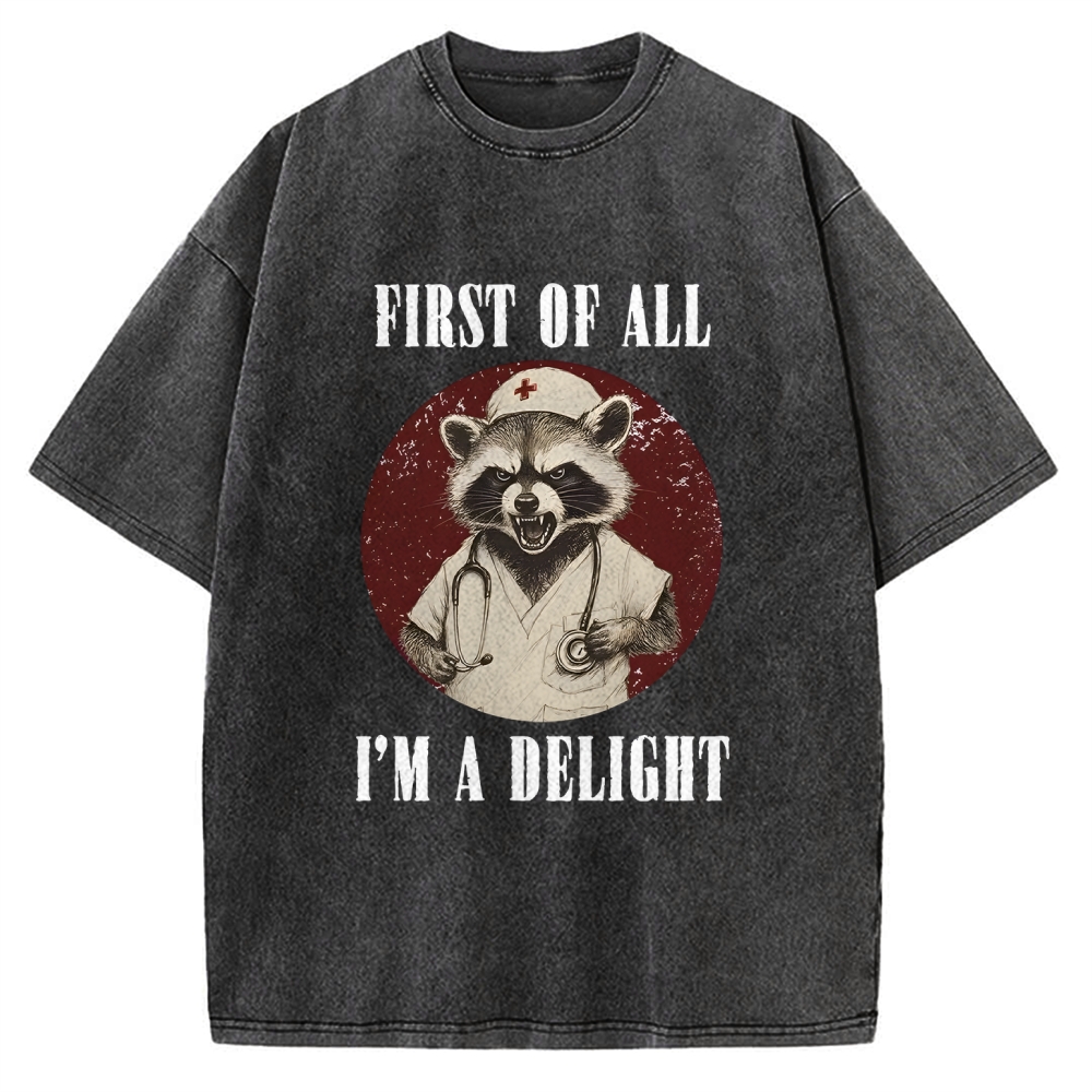 First Of All I'm A Delight Raccoon Vintage Washed T-shirt