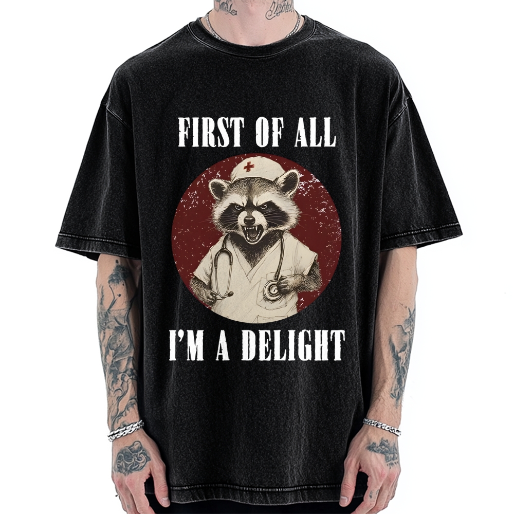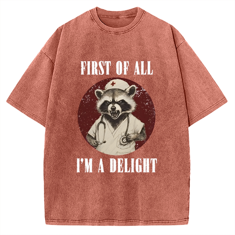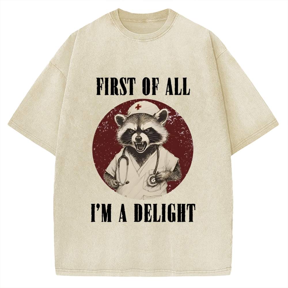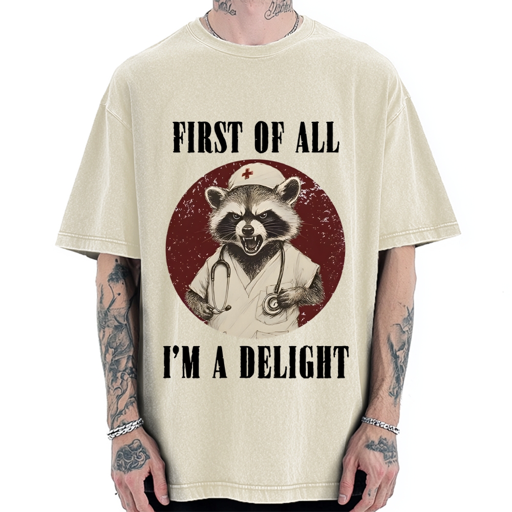 First Of All I'm A Delight Raccoon Vintage Washed T-shirt