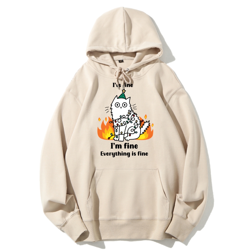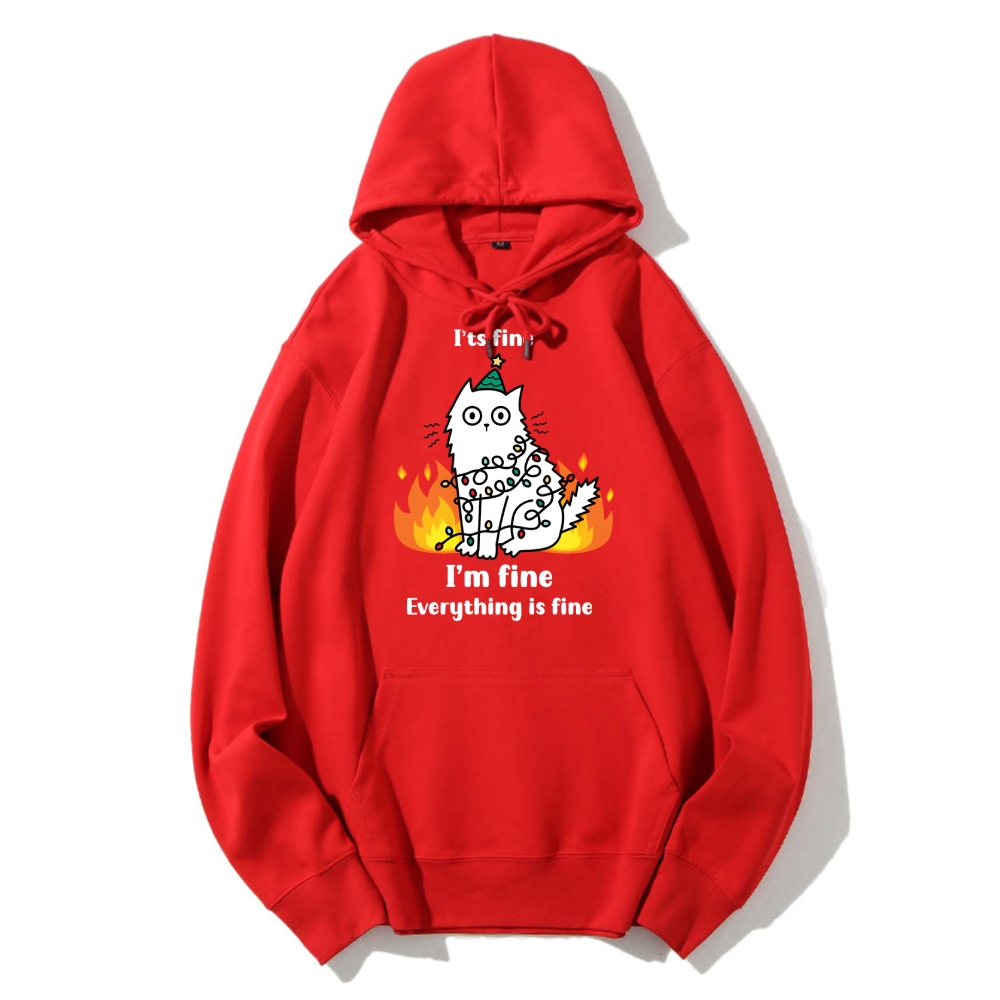 Funny Christmas cat with garland Cotton Hoodie