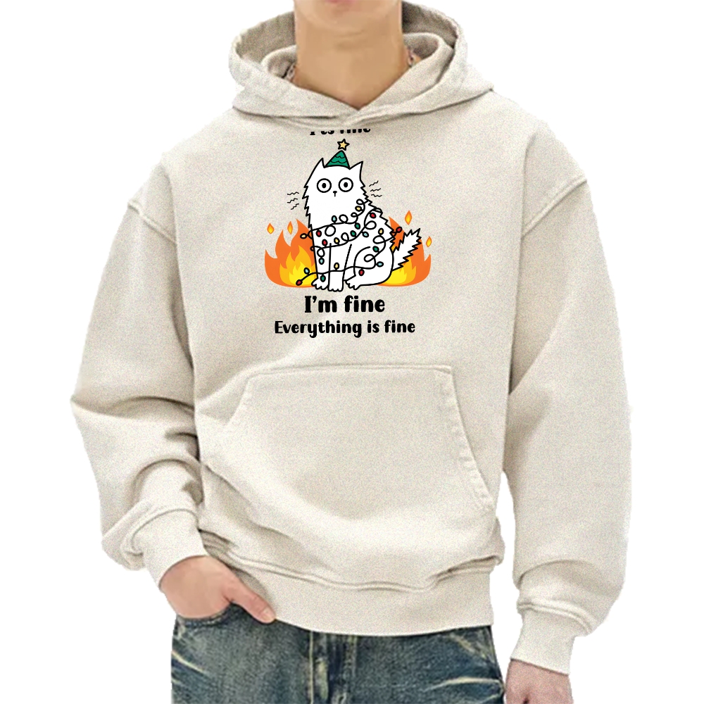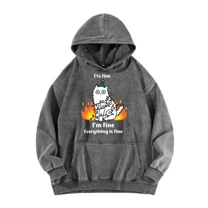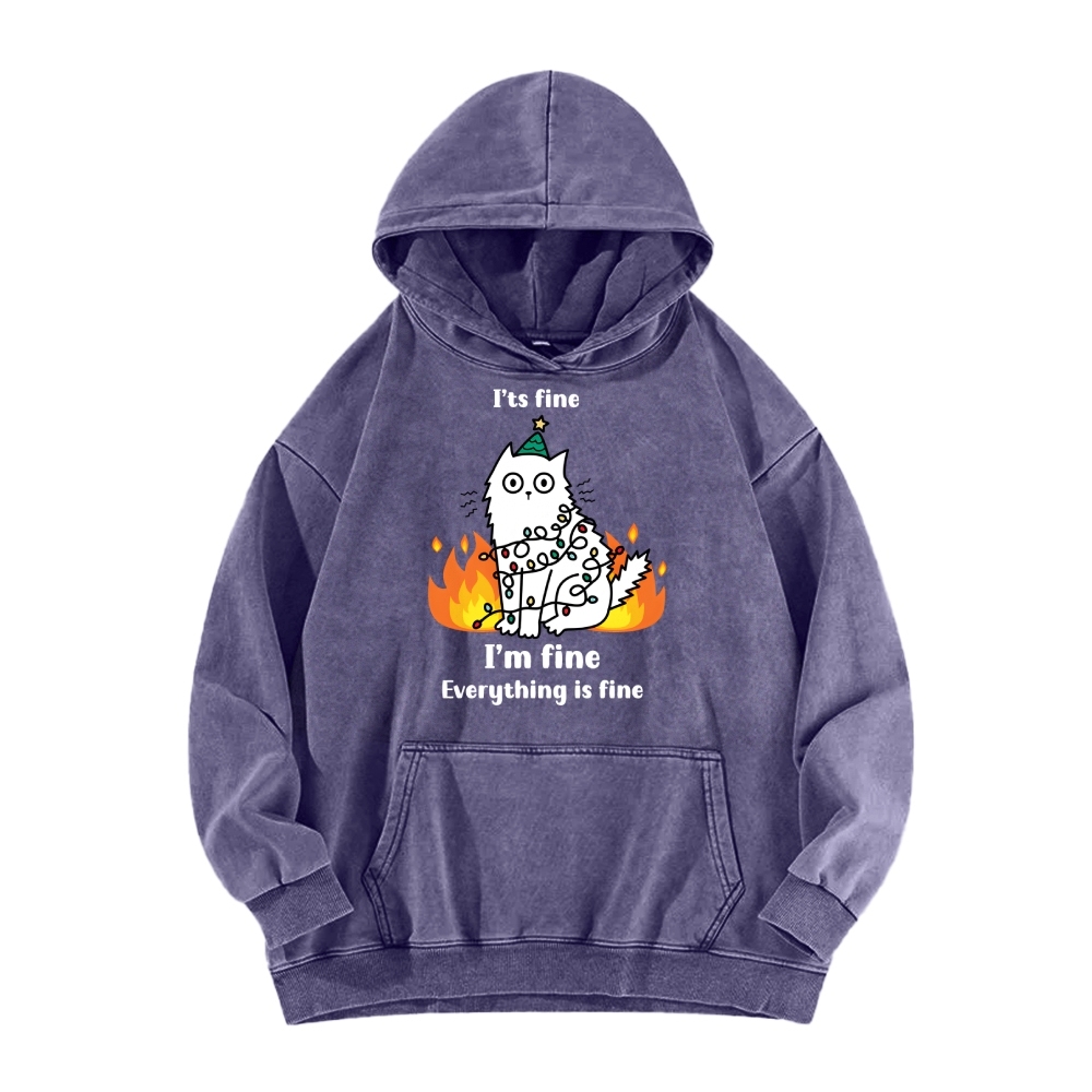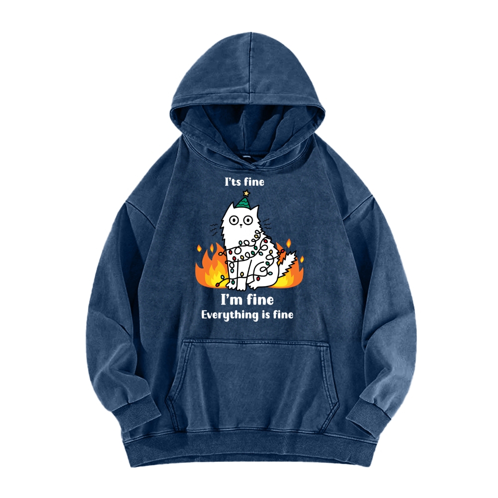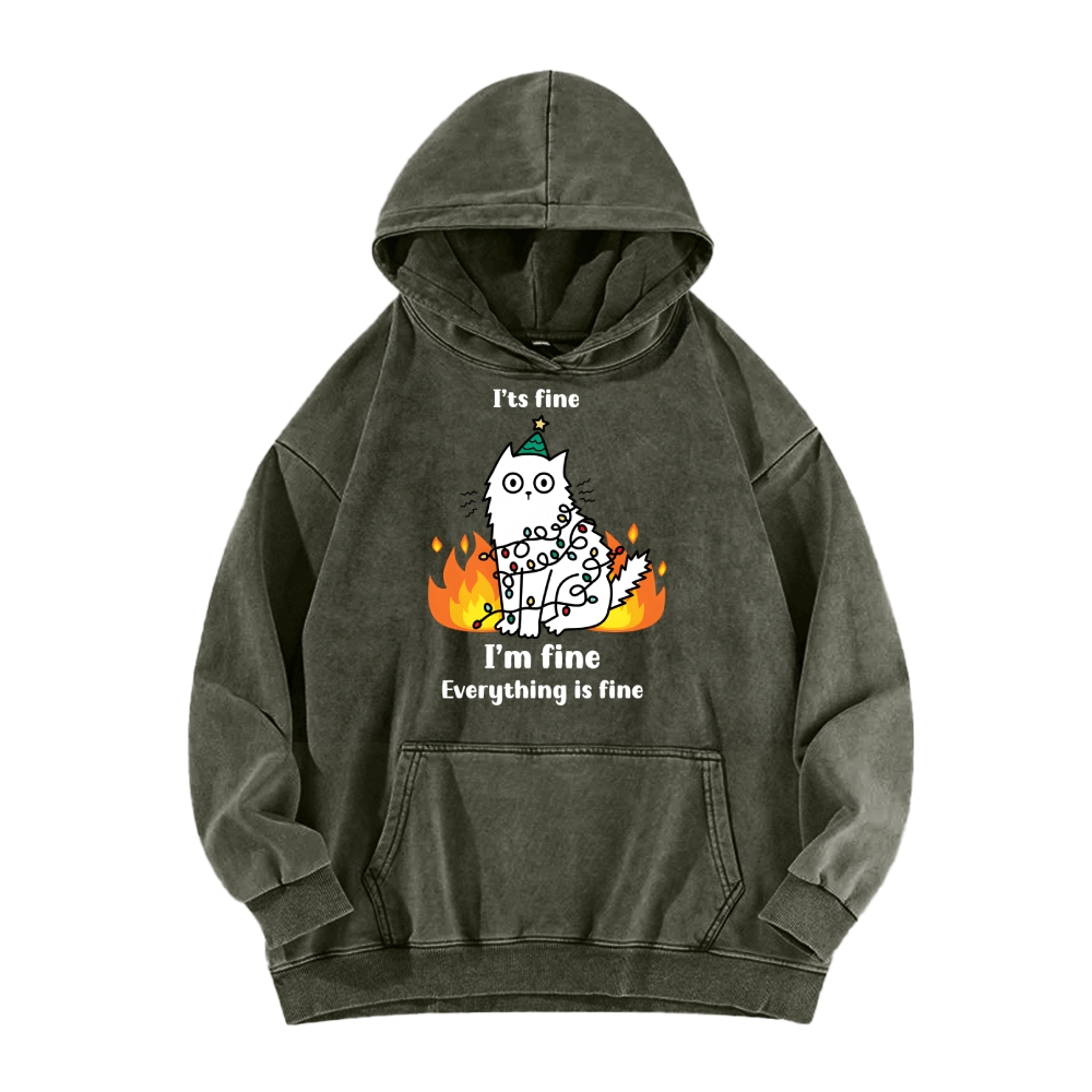 Funny Christmas cat with garland Vintage Washed Hoodie