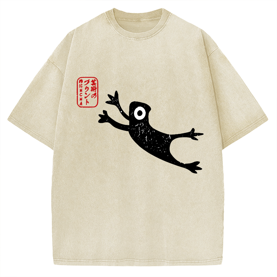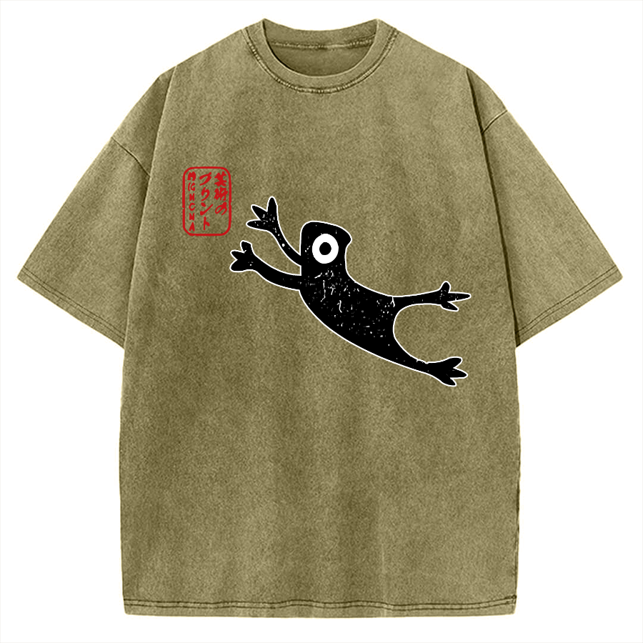Funny Grumpy Japanese Frog Vintage Washed T-shirt
