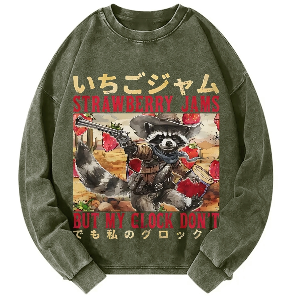 Funny Raccoon Cowboy Strawberry Jams Vintage Washed Sweatshirts