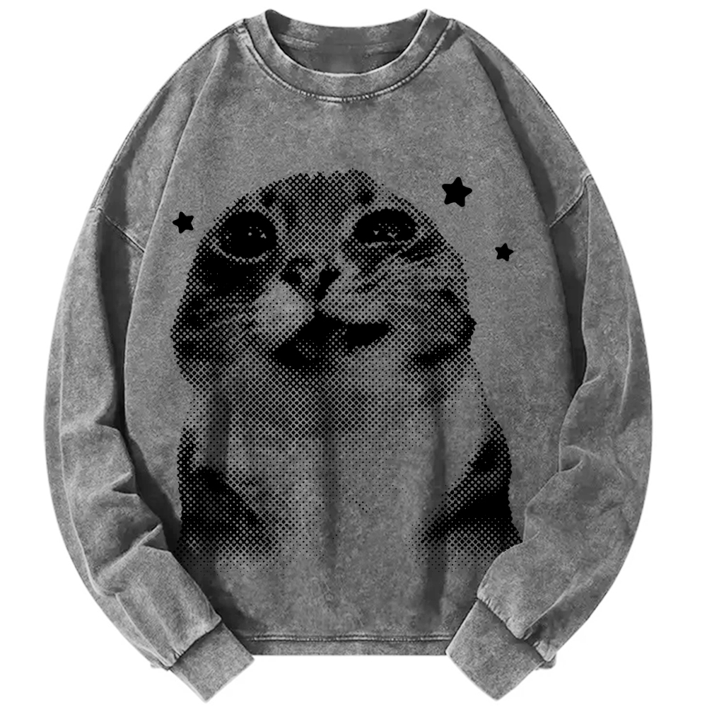 Funny Y2k Retro Cat Meme Vintage Washed Sweatshirts
