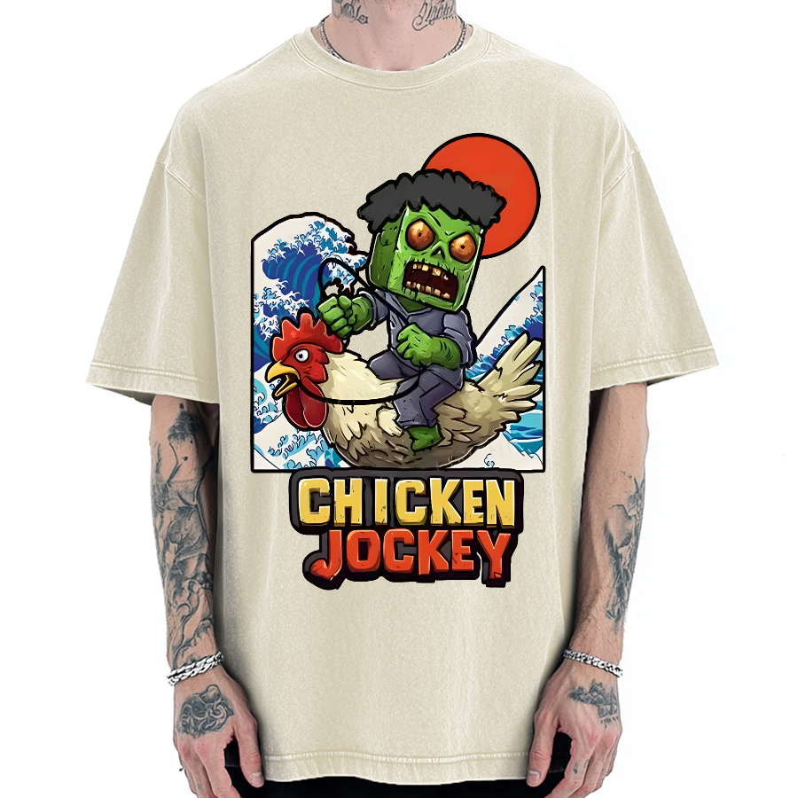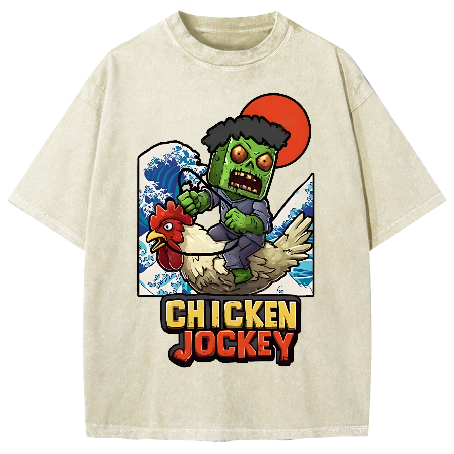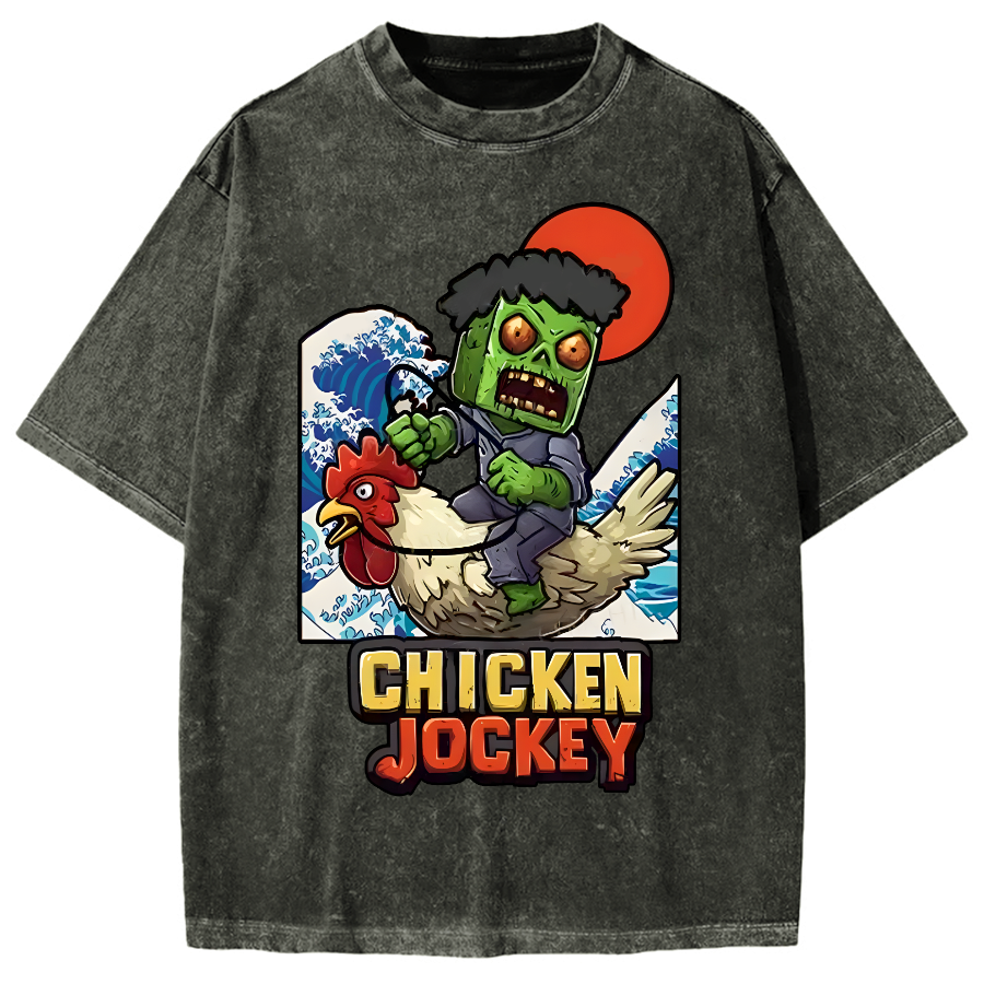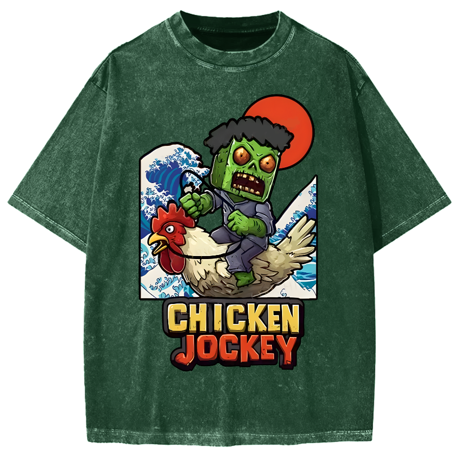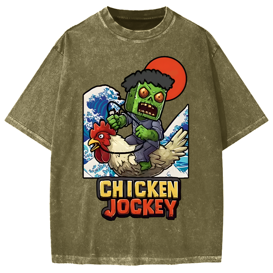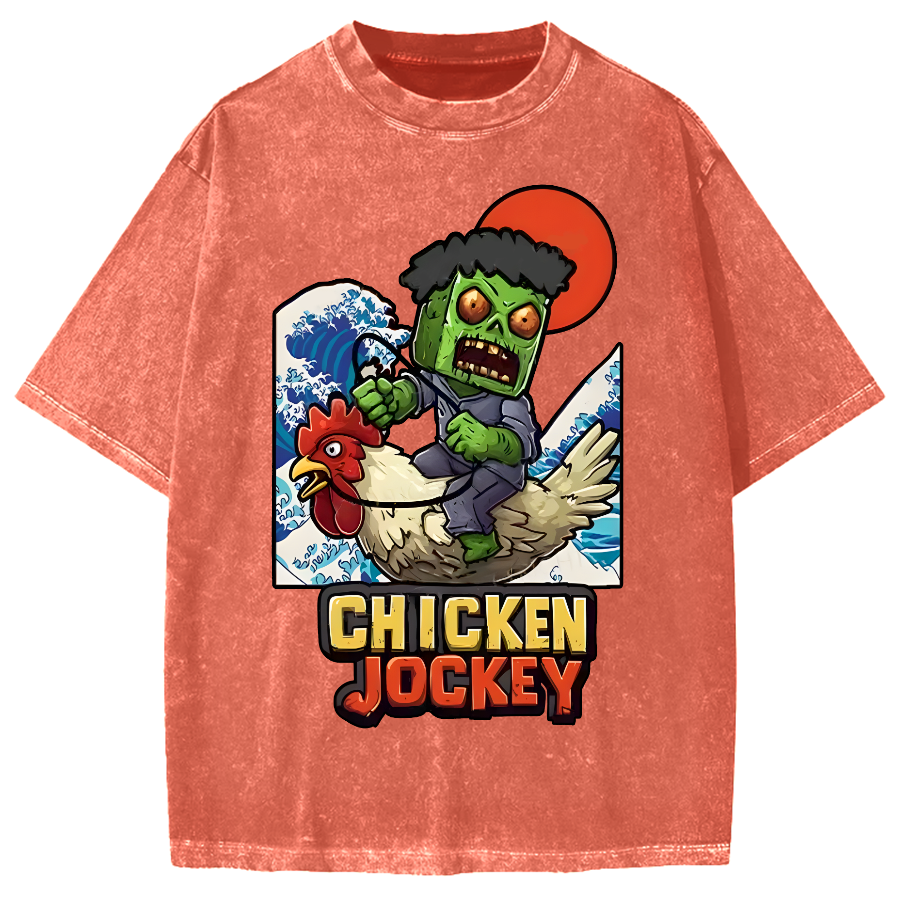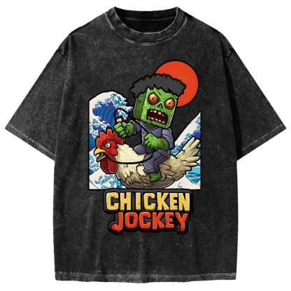 Funny Zombie Riding A Chicken jockey Vintage Washed T-shirt