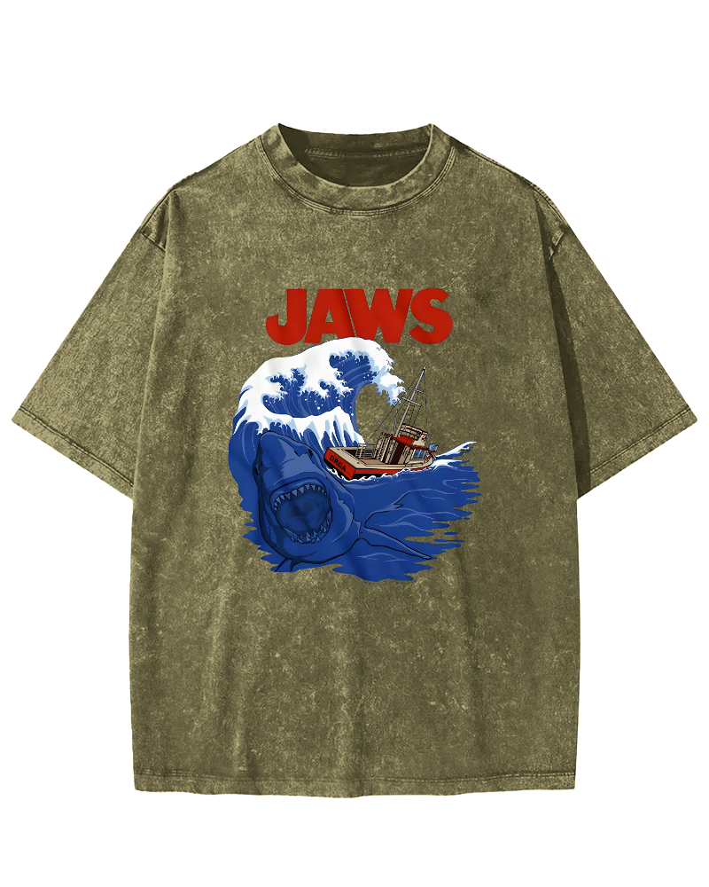 Great White Shark Japanese Art Vintage Washed T-shirt