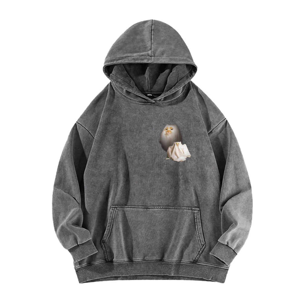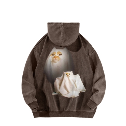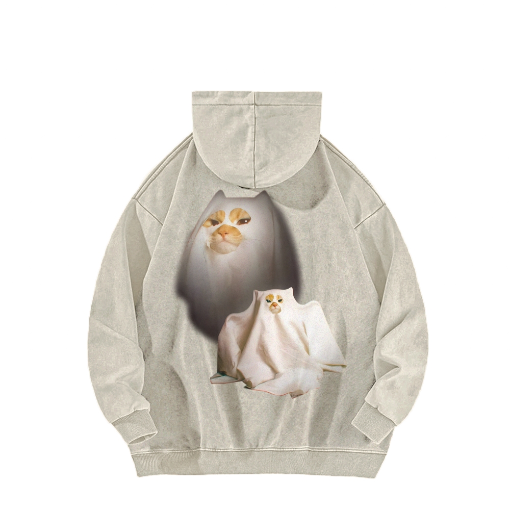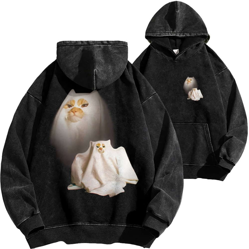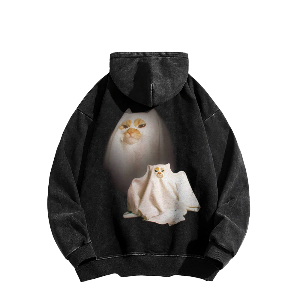 I Love Spooky Kitty Front And Back Printing Vintage Washed Hoodie